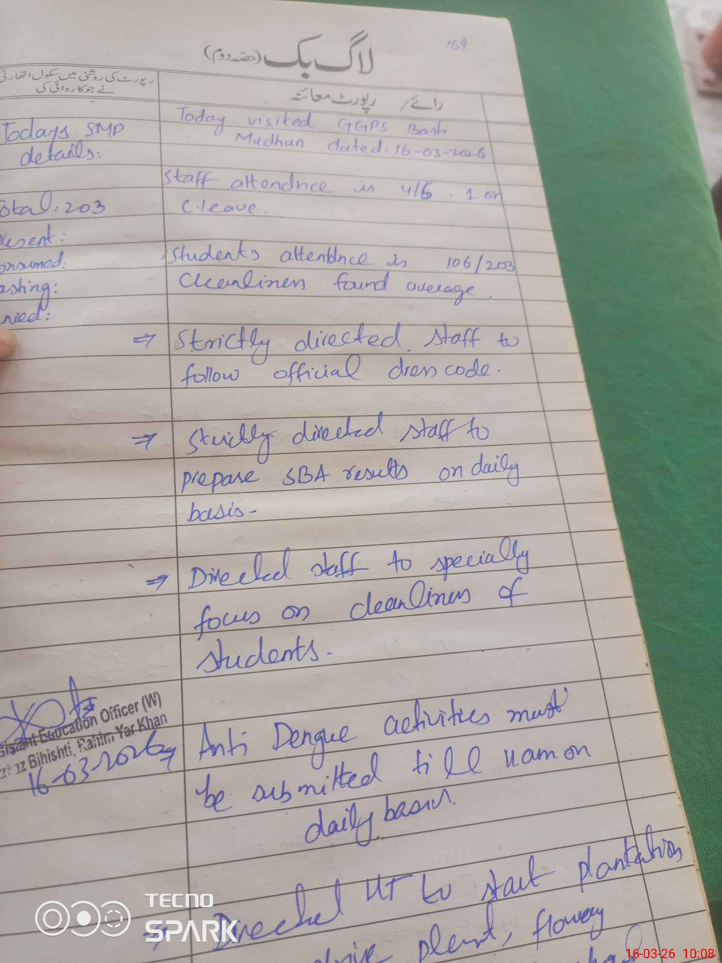 | Certified that this School was Inspected by the Undersigned MEA/DMO Today and the Information Stated Above is as Per Record. | |||||