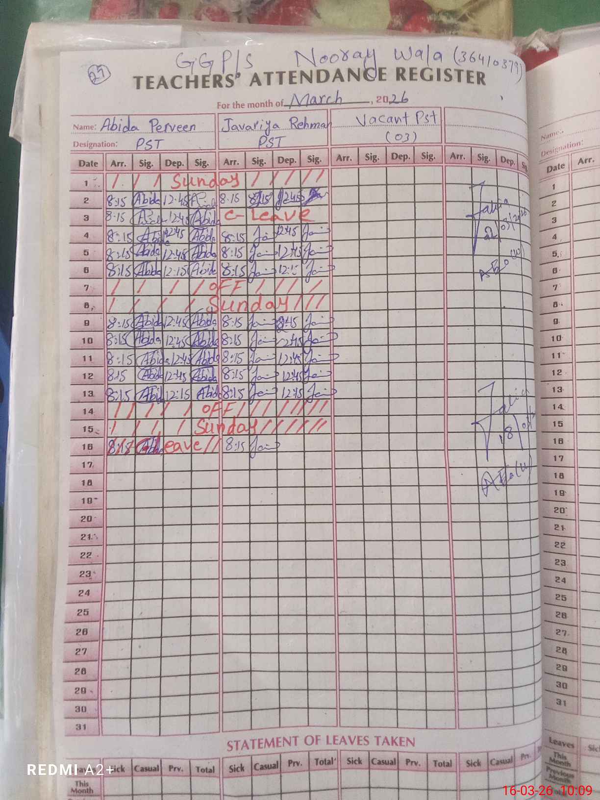 | 36**** | Ab**** Pe**** | PST Arts | Regular | 0 | 0 | 0 | 0 | 0 | 0 | 0 | 0 | 0 | Casual |