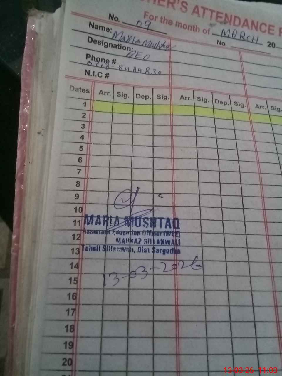 | District: SARGODHA | Tehsil: SILLANWALI | Markaz: SILLANWALI - FEMALE | Level: Middle | |