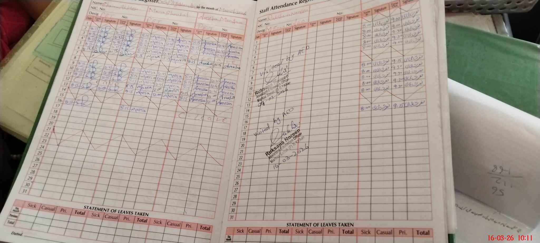 | Leave | Duty | Absent | Maternity | Medical | Ex- Pak |