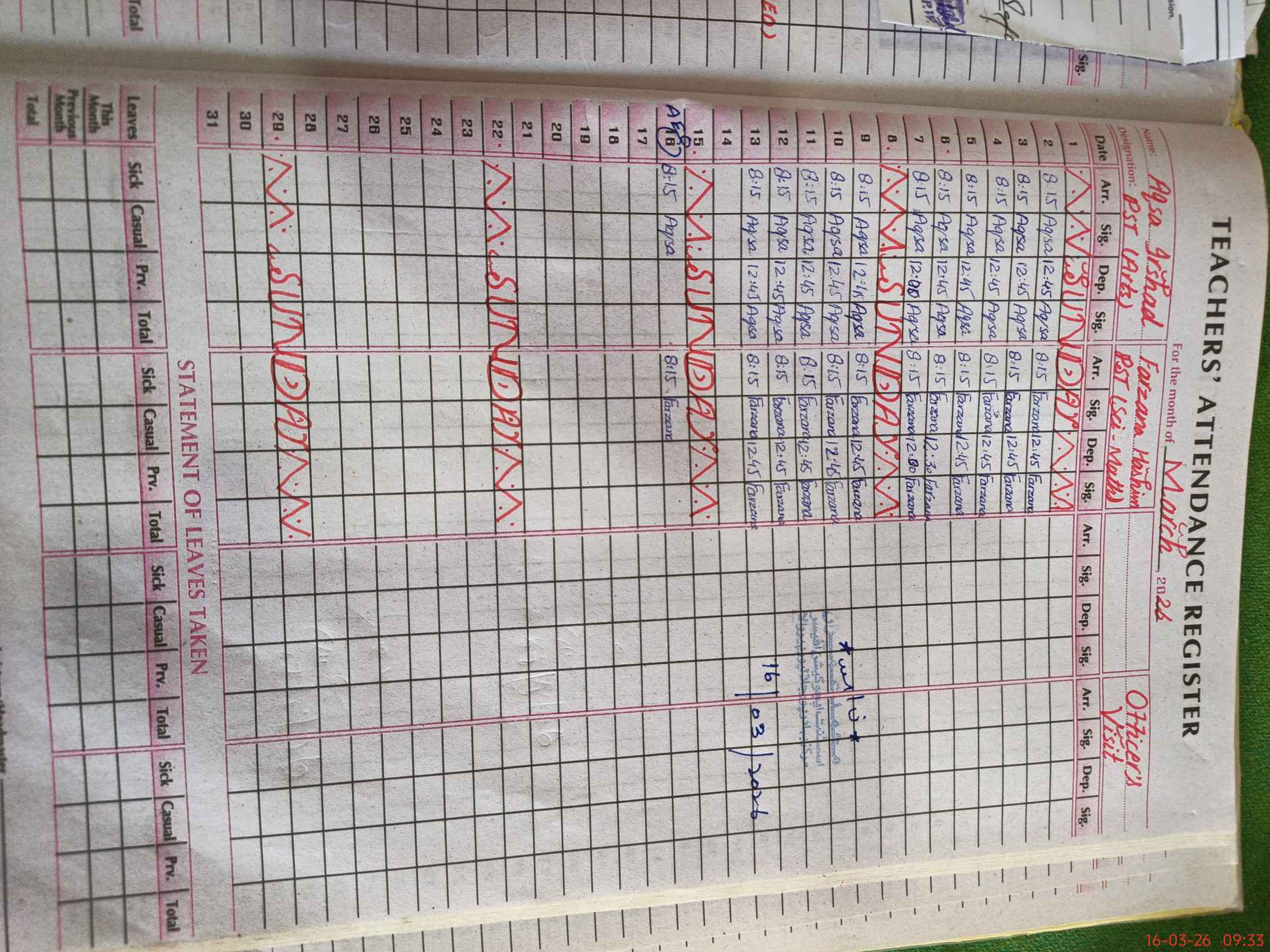 | Monitoring Date: 16-03-2026 | Start Time: 16-03-2026 09:14 AM | End Time: 16-03-2026 09:33 AM | Name of MEA: Mu**** Im**** | |