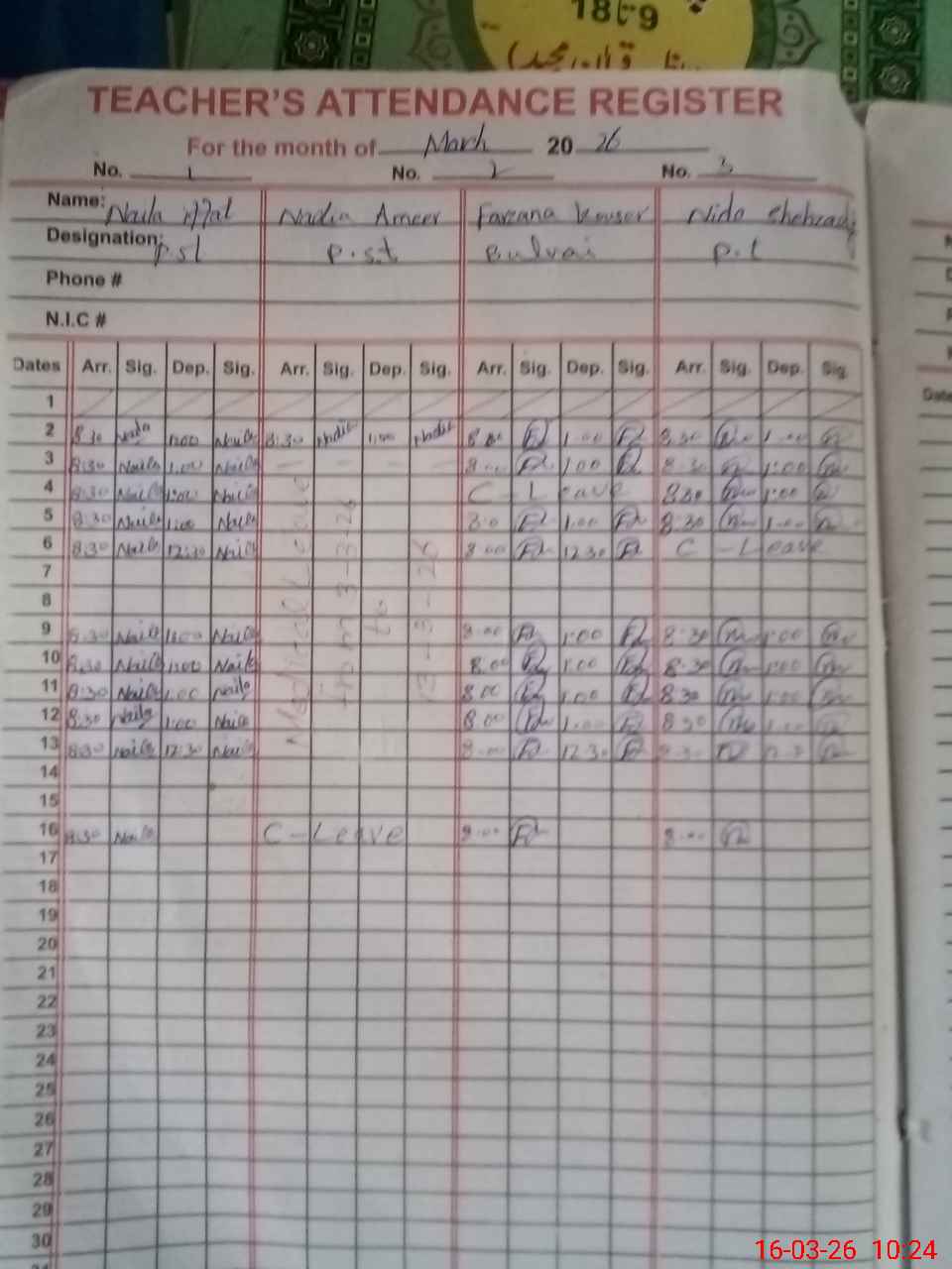 | 34**** | Ul**** Sh**** | PST Science/Maths | Regular | 0 | 0 | 28 | 0 | 0 | 0 | 0 | 0 | 0 | Absent (Un-Authorized) |