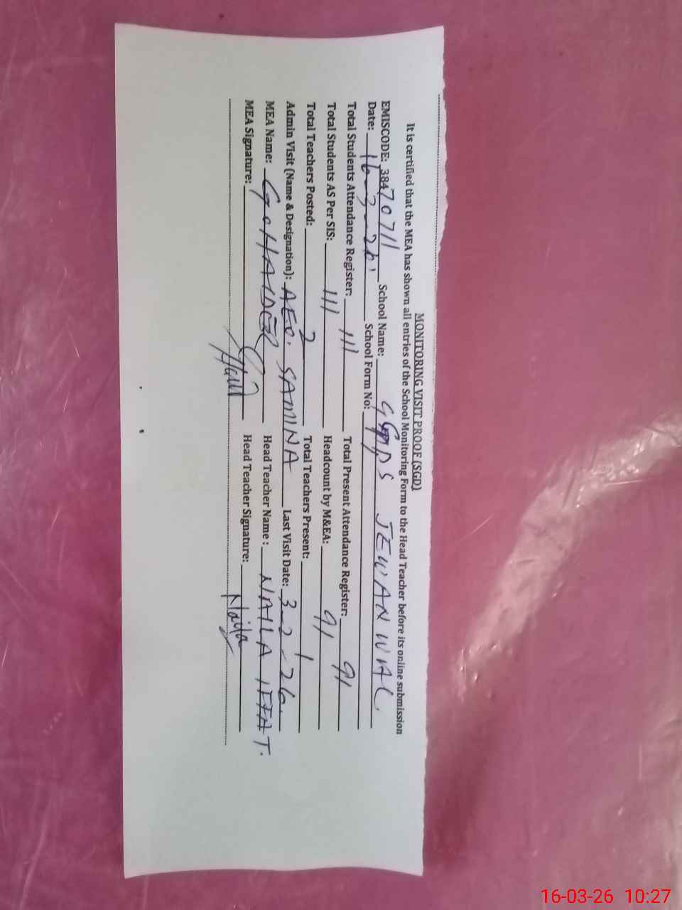 | EMIS Code: 38470711 | Name of School: GGPS JEWAN WAL | |||