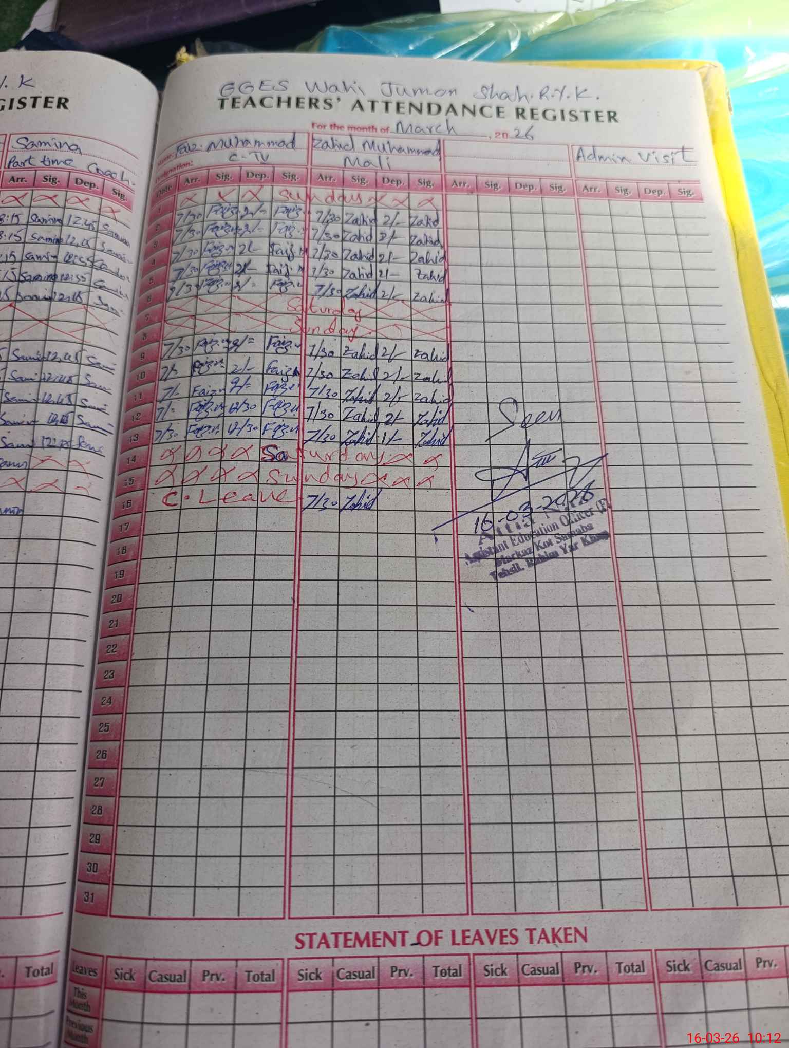 | 31**** | Fa**** Mu**** | CLASS 4 | Regular | 0 | 16 | 1 | 0 | 0 | 0 | 0 | 0 | 0 | Absent (Un-Authorized) |