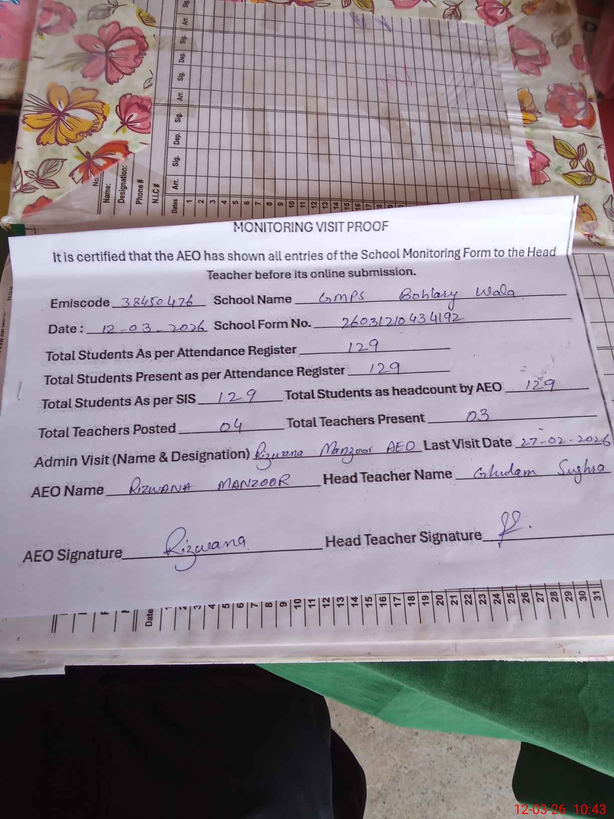 | EMIS Code: 38450476 | Name of School: GMPS BOHLRI WALA | |||