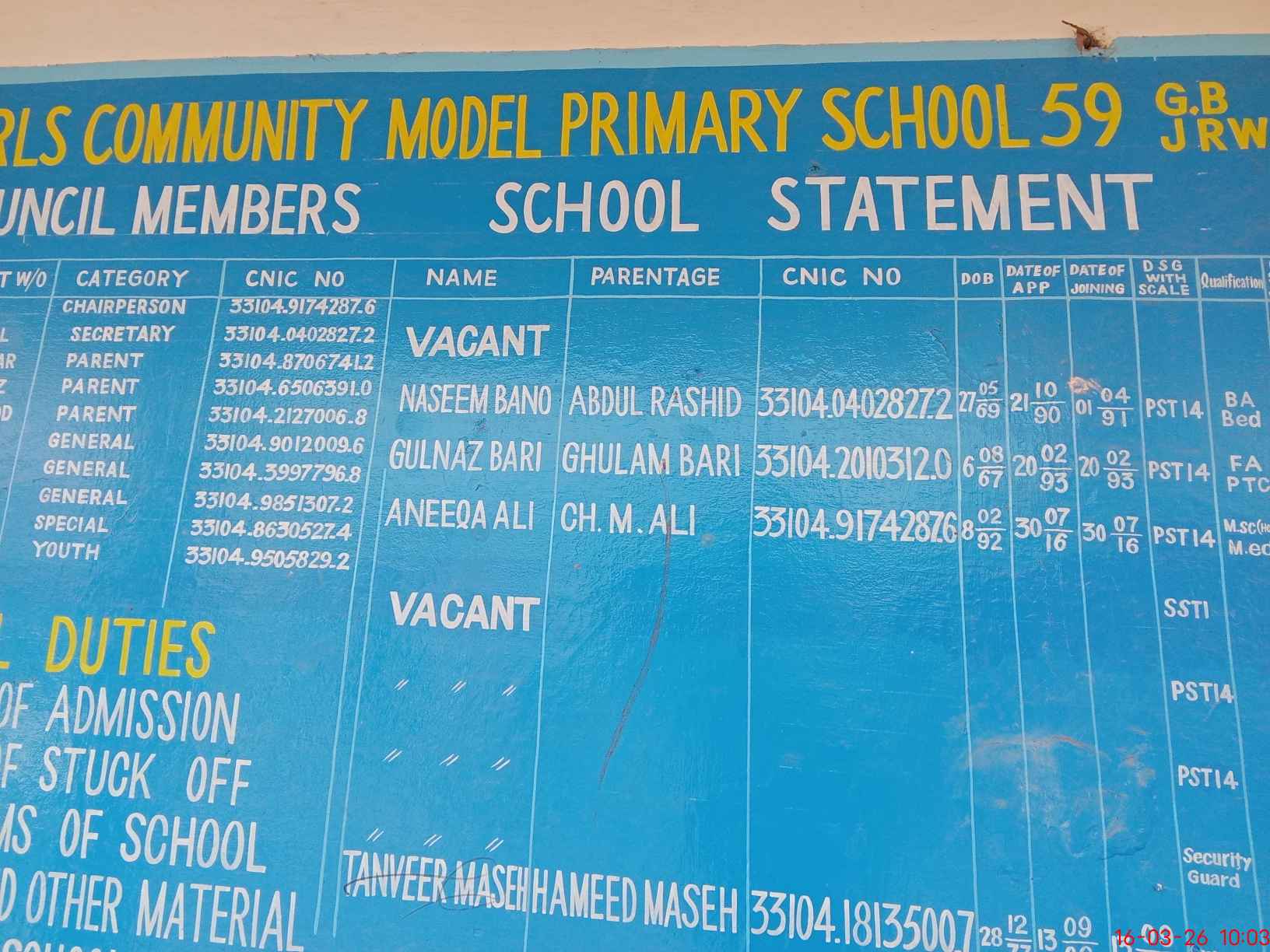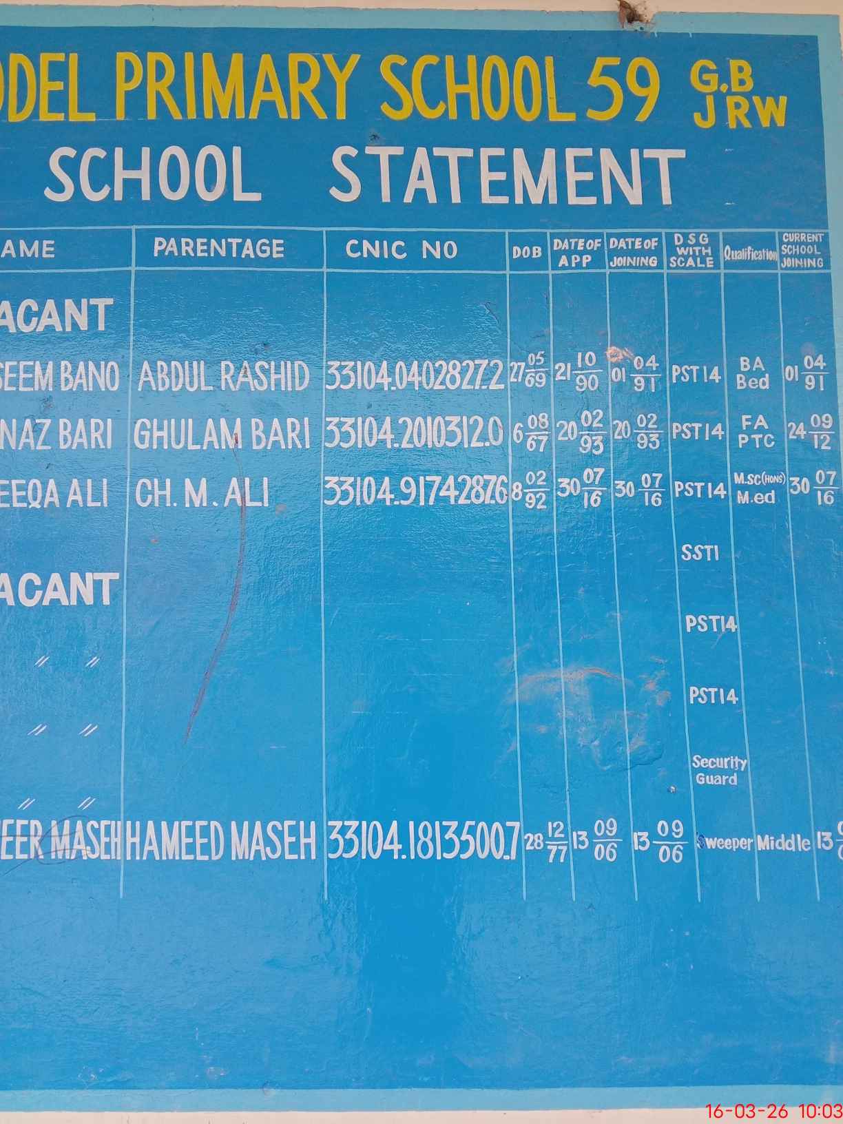 | EMIS Code: 33120341 | Name of School: GGCMS CHAK 59 GB JARANWALA | |||