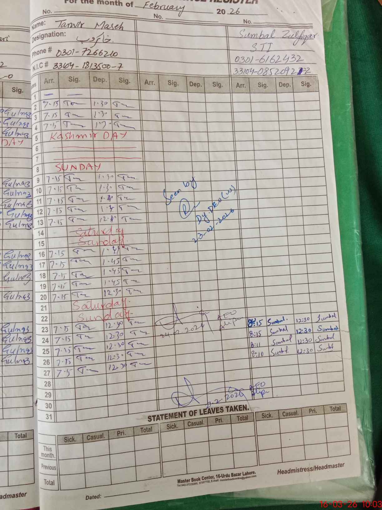 | Name: An**** Al**** Designation: (School Headmaster's/Headmistress's) PST Phone/Cell Number: 03**** |