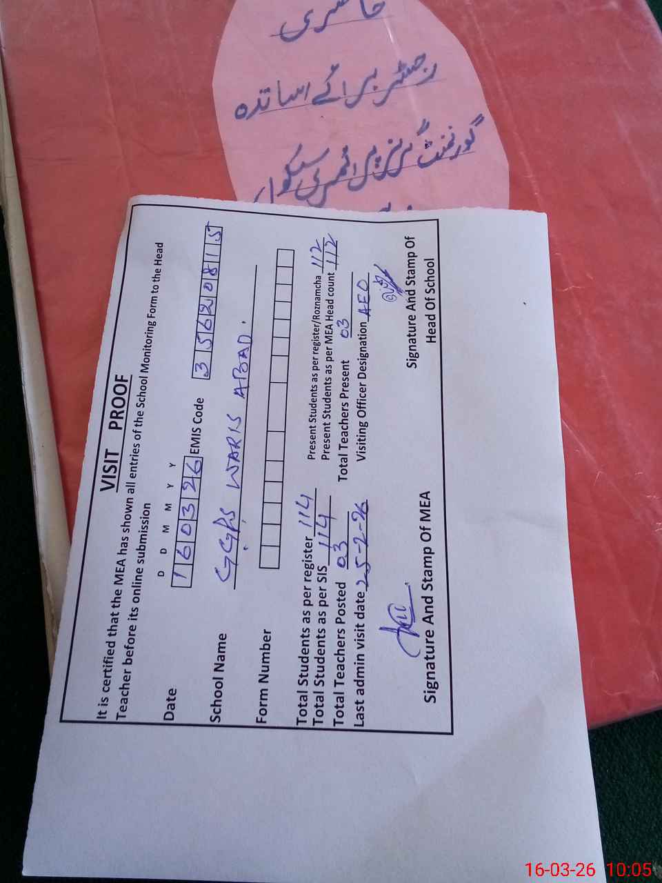 | EMIS Code: 35620815 | Name of School: GGPS WARIS ABAD CHAK 20 RB | |||