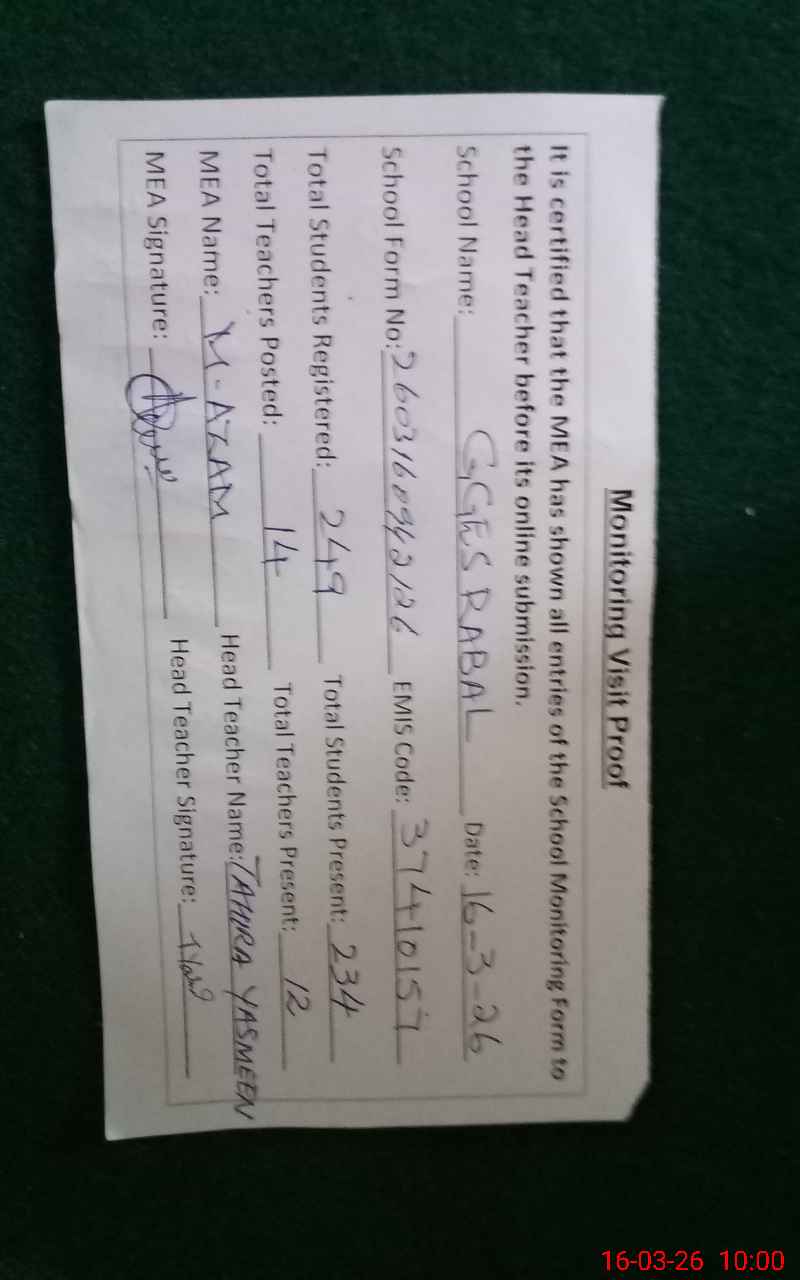 | EMIS Code: 37410157 | Name of School: GGES RABAL | |||