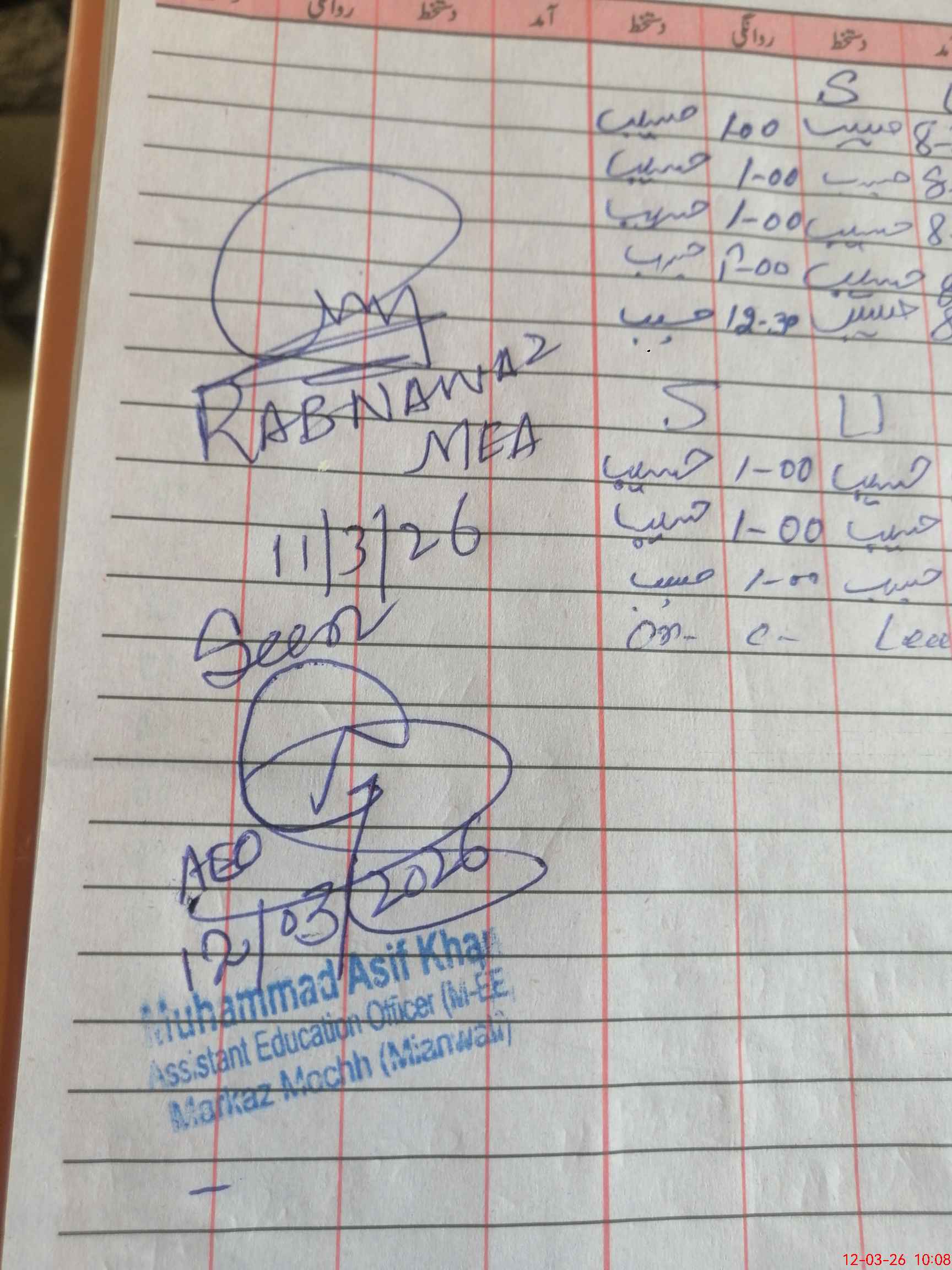 | Monitoring Date: 12-03-2026 | Start Time: 12-03-2026 09:42 AM | End Time: 12-03-2026 10:08 AM | Name of MEA: Mu**** As**** Kh**** | |