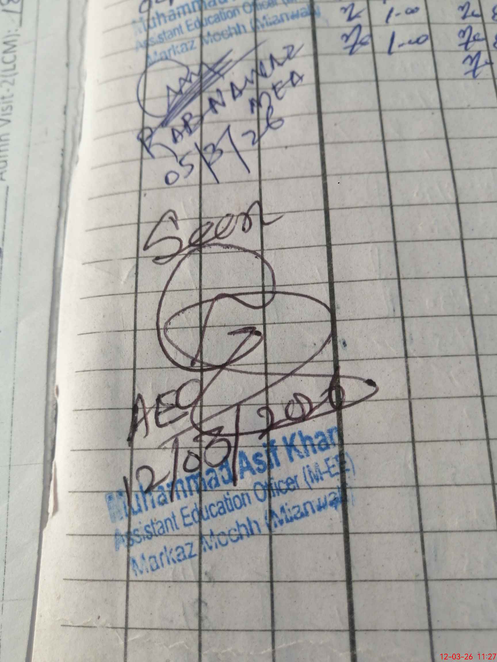 | Monitoring Date: 12-03-2026 | Start Time: 12-03-2026 10:45 AM | End Time: 12-03-2026 11:27 AM | Name of MEA: Mu**** As**** Kh**** | |