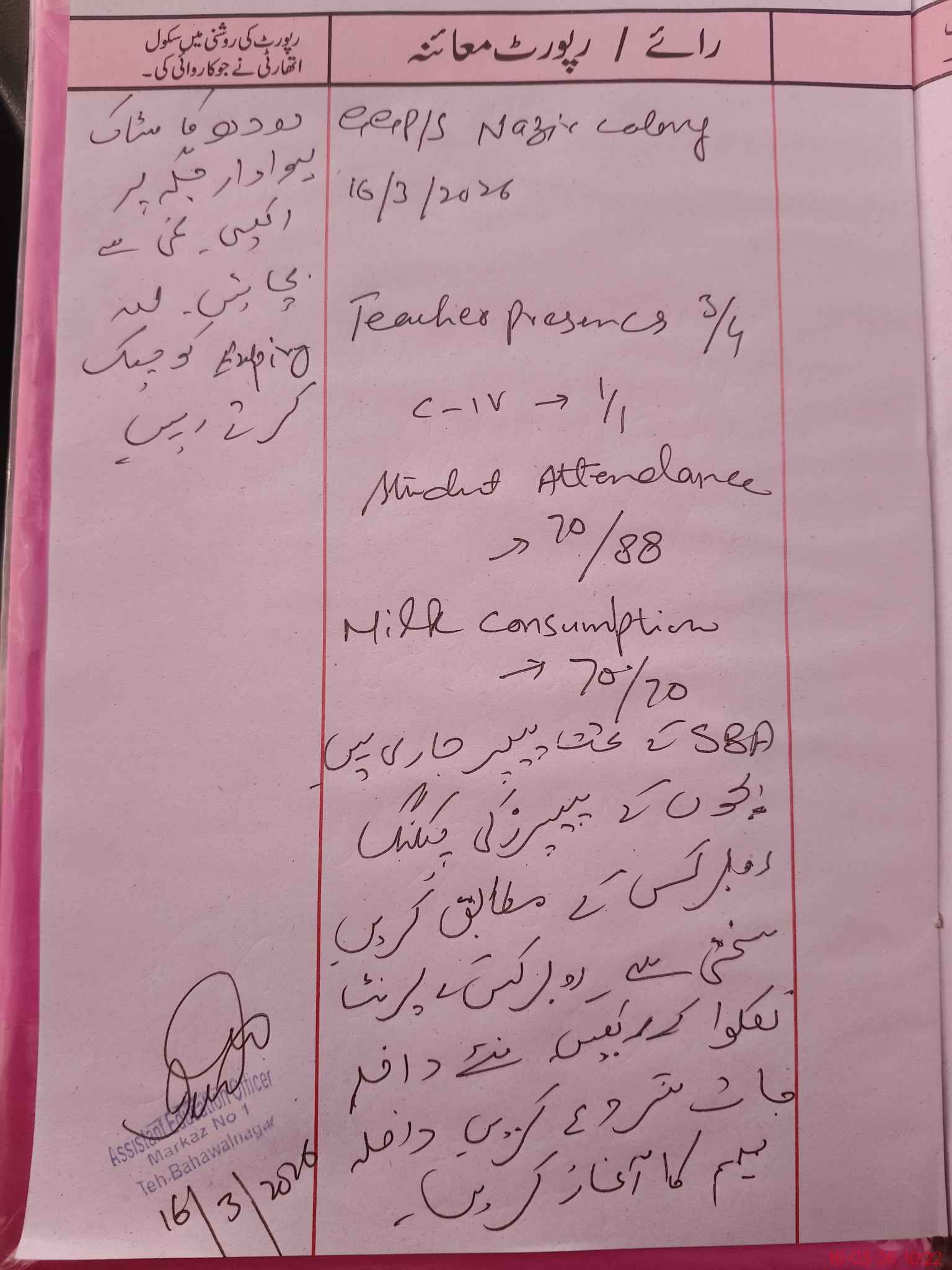 | District: BAHAWALNAGAR | Tehsil: BAHAWALNAGAR | Markaz: BWN-1-FEMALE | Level: Primary | |