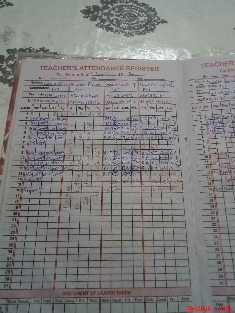 | Name: VE**** OS**** Designation: (School Headmaster's/Headmistress's) Head Mistress Phone/Cell Number: 03**** |