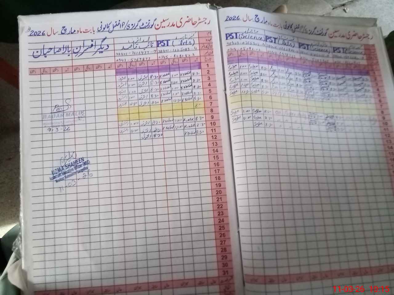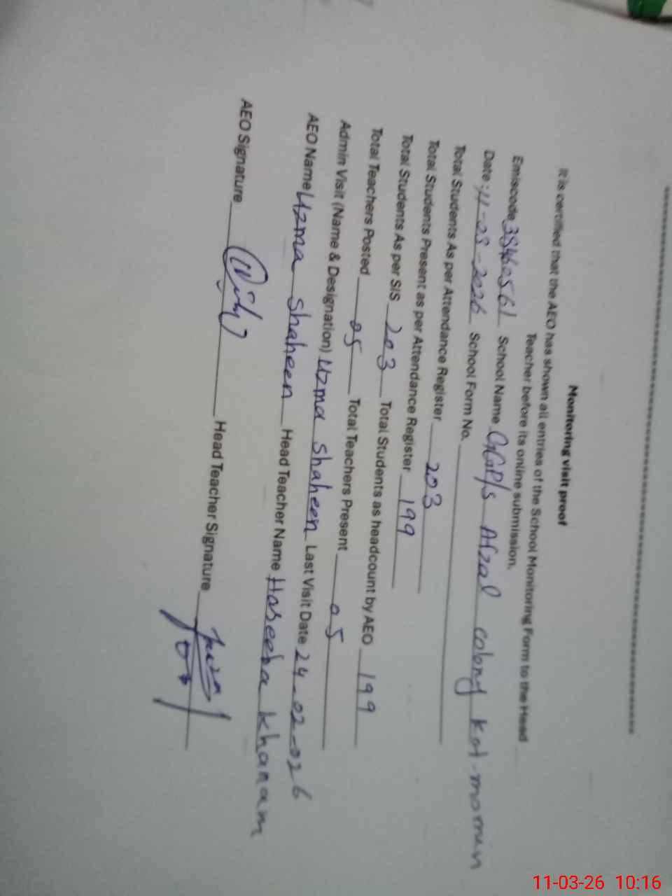 | Name: HA**** KH**** Designation: (School Headmaster's/Headmistress's) PST Phone/Cell Number: 03**** |