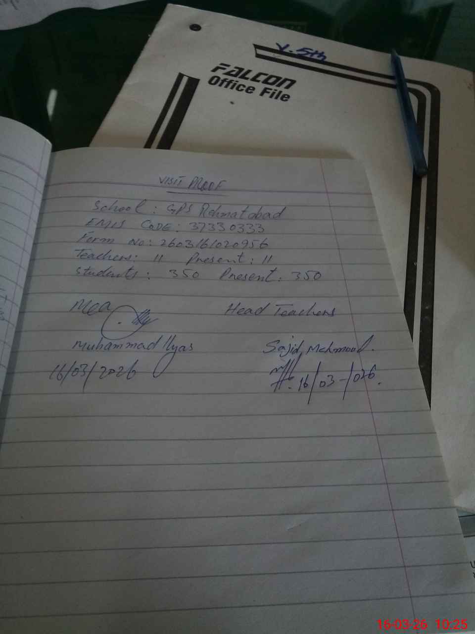 | EMIS Code: 37330333 | Name of School: GPS REHMAT ABAD | |||