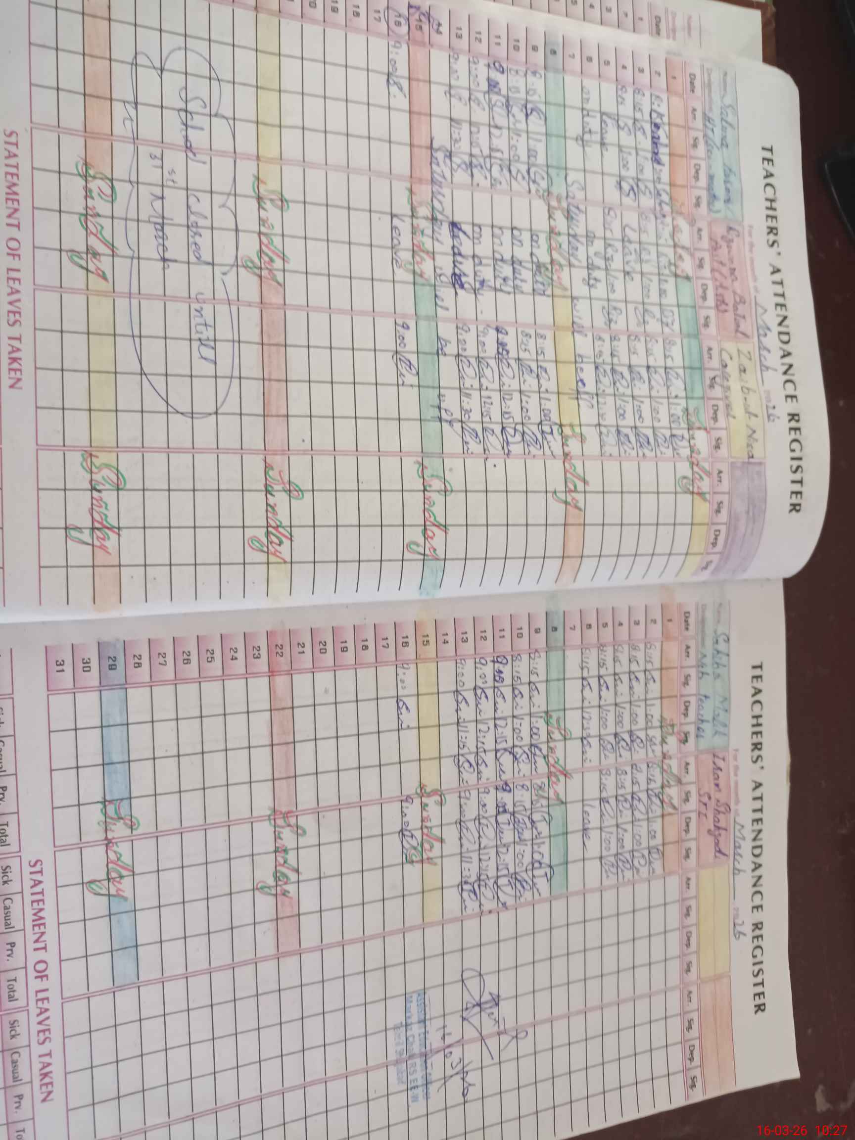 | Leave | Duty | Absent | Maternity | Medical | Ex- Pak |