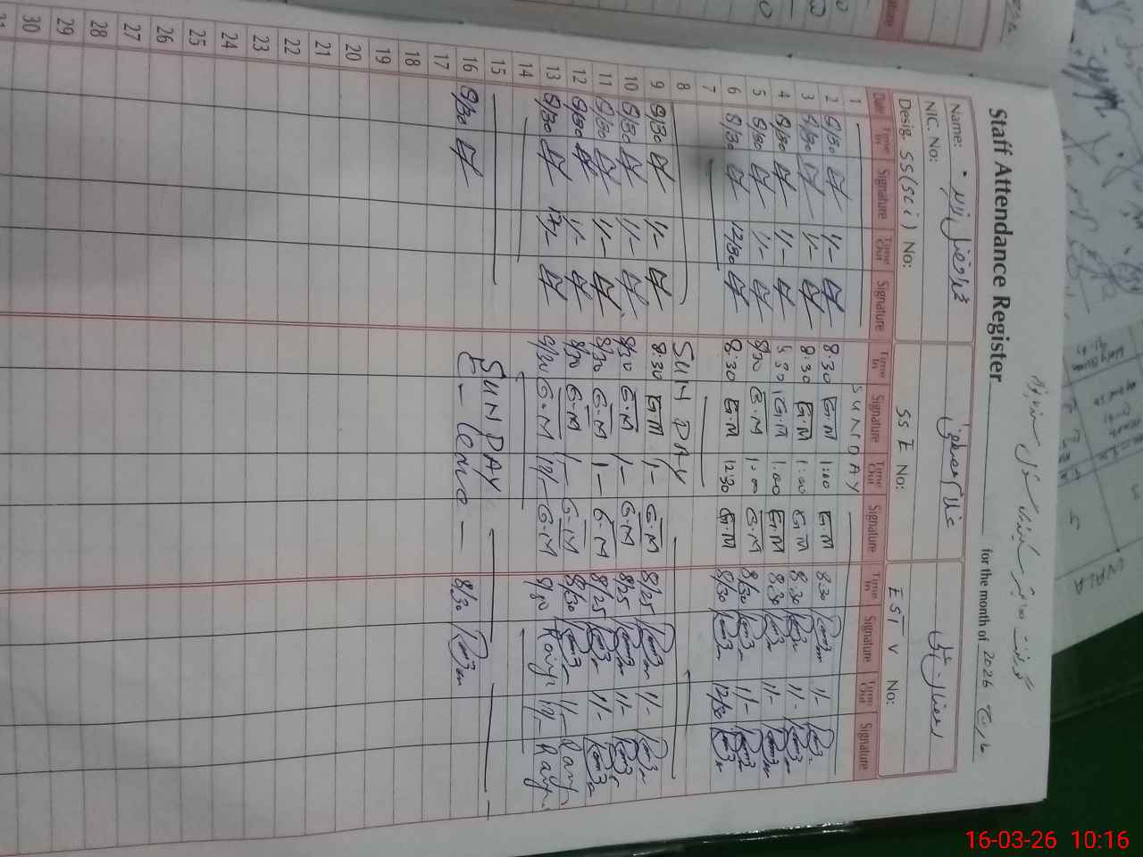 | CNIC | Full Name | Designation | R/C | Absence During Last Calender Month |