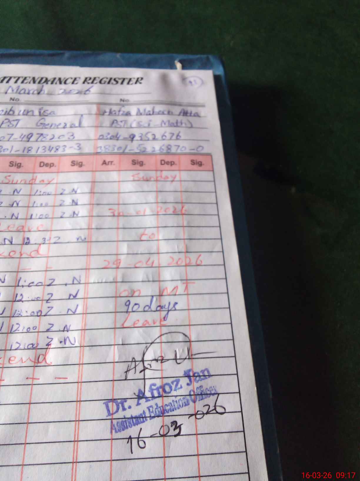 | Name: Ni**** Am**** Designation: (School Headmaster's/Headmistress's) SSE Eng Phone/Cell Number: 03**** |