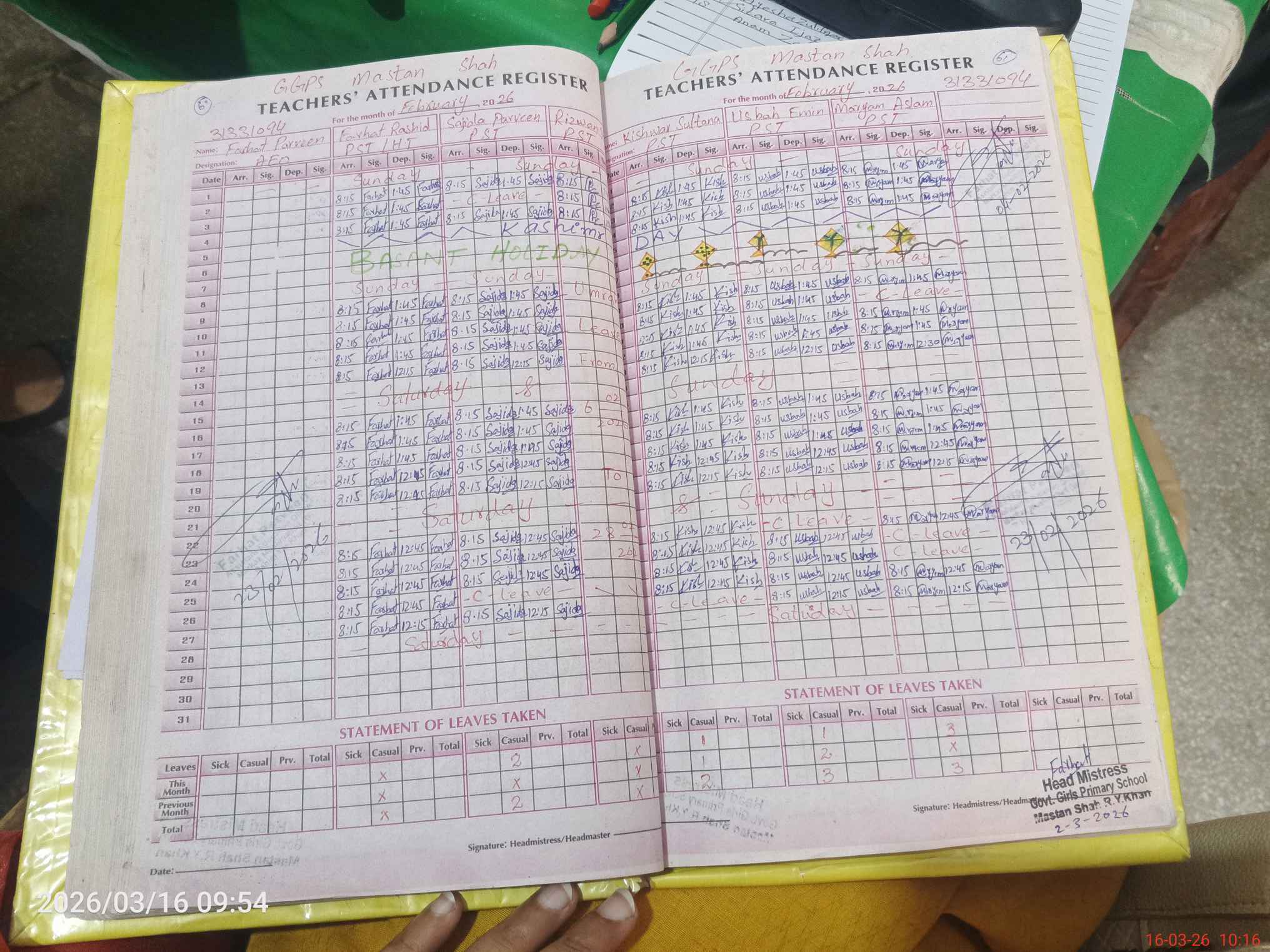 | Attendance Register | Head Teacher | MEA with School | Visit Proof |