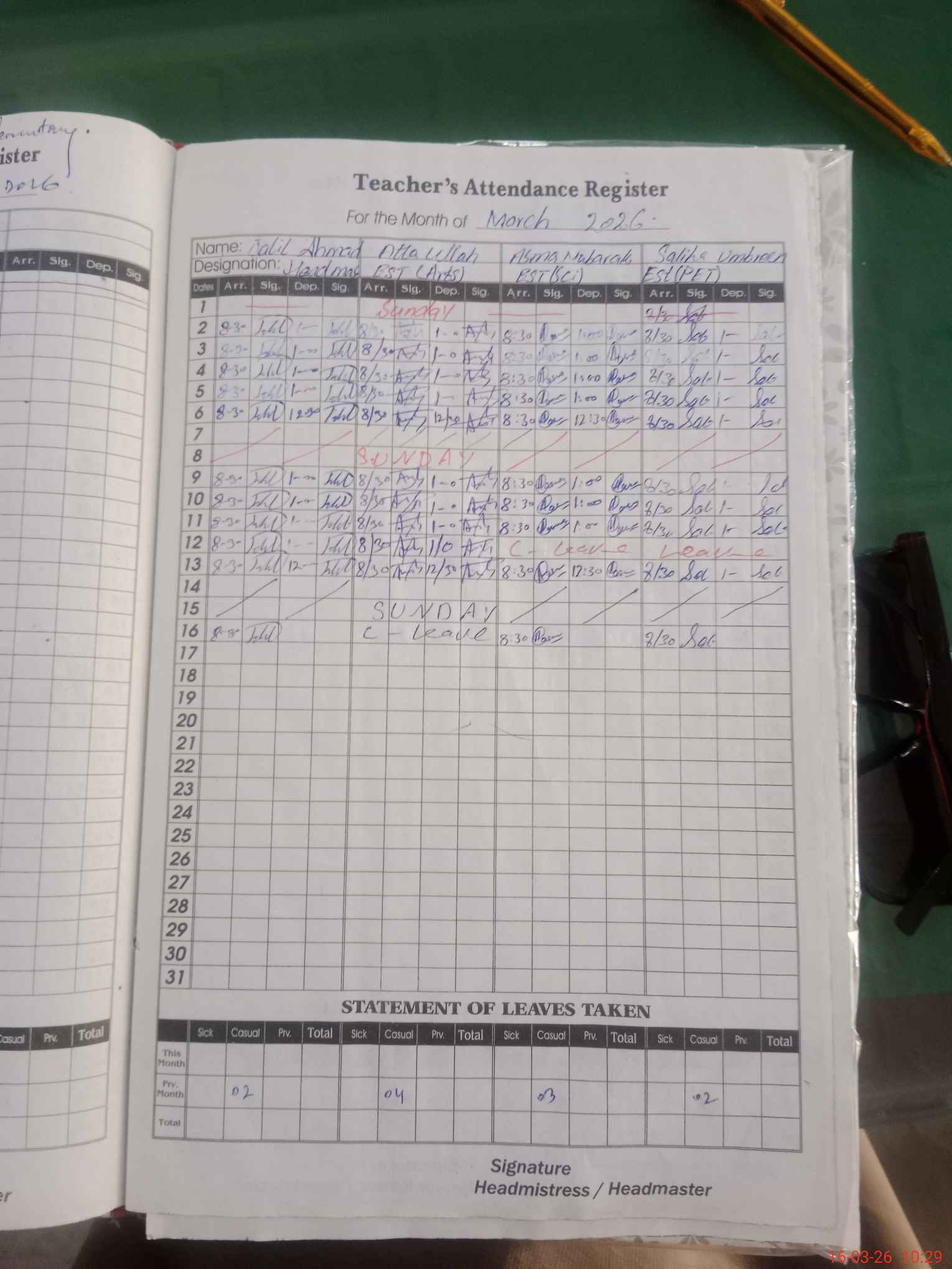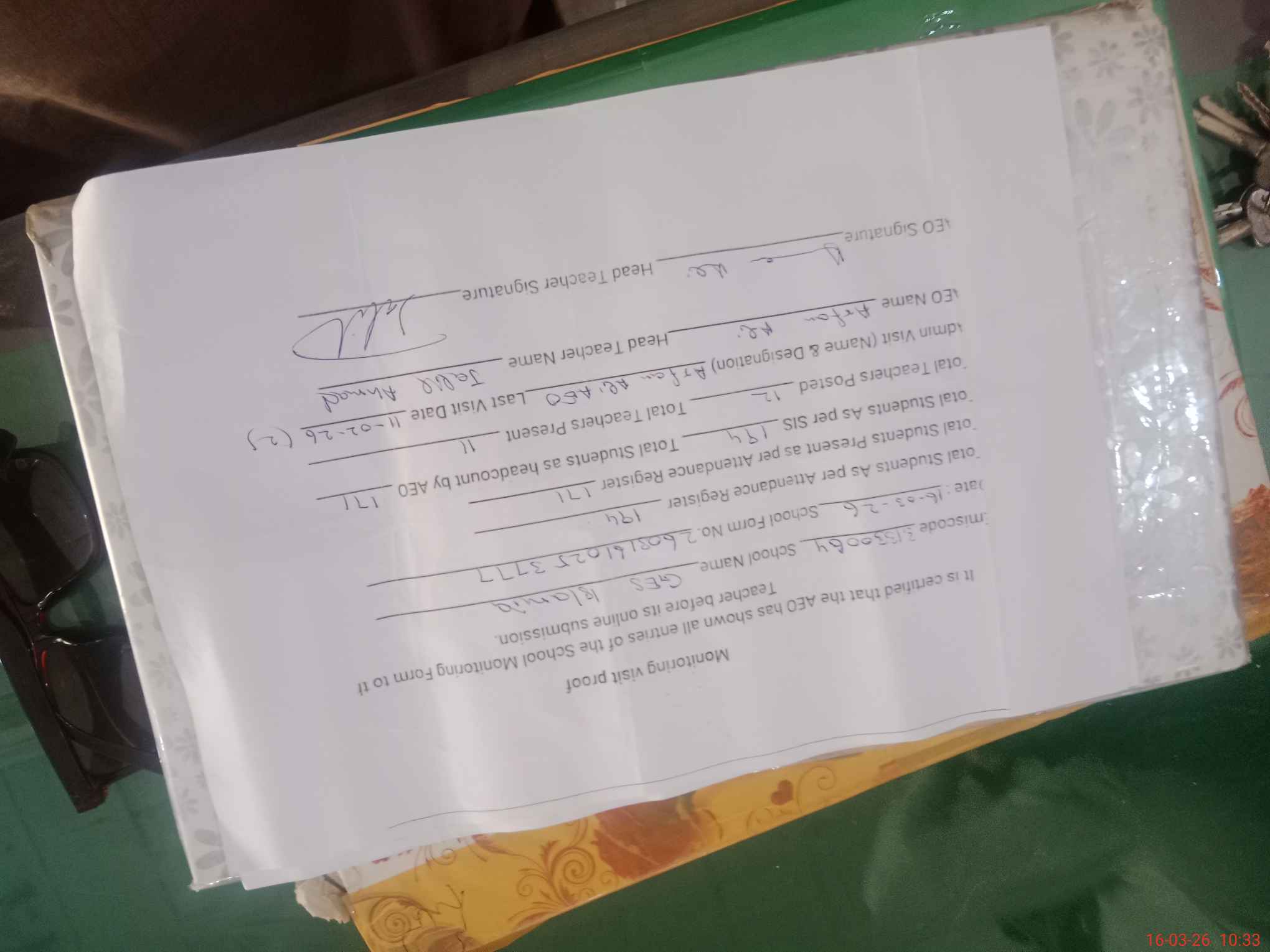 | Attendance Register | Head Teacher | MEA with School | Visit Proof |