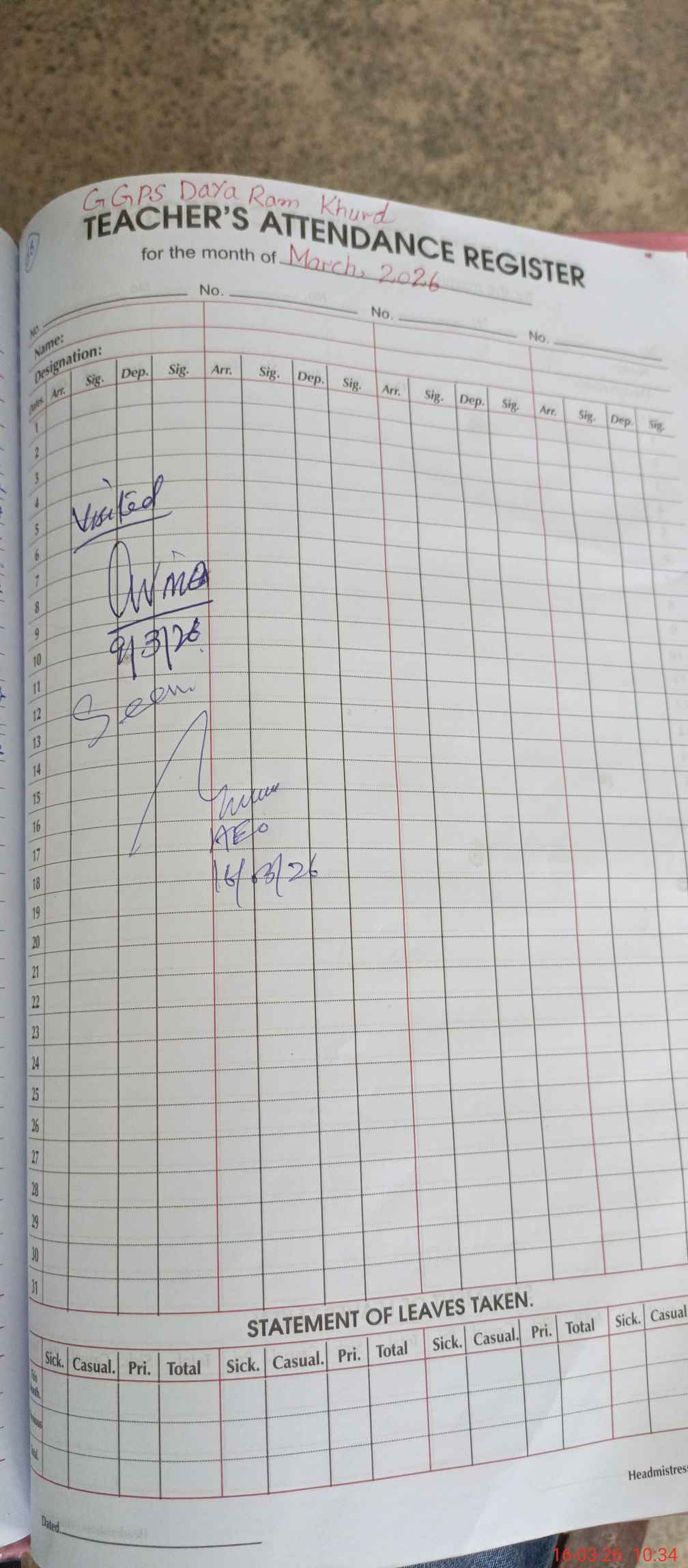 | EMIS Code: 39310964 | Name of School: GGPS DAYARAM KHURD | |||
