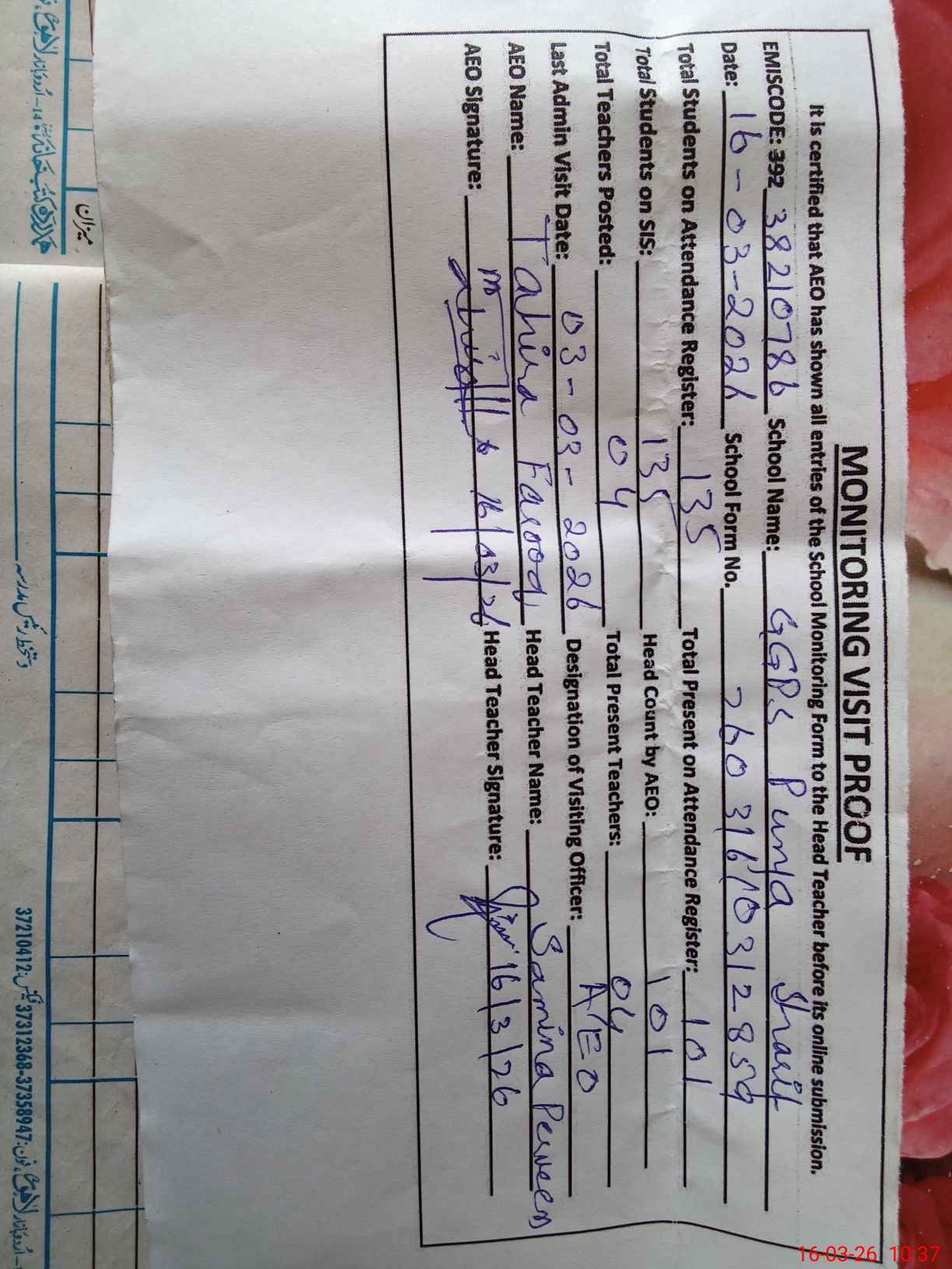 | EMIS Code: 38210786 | Name of School: GGPS PUNJA SHARIF | |||