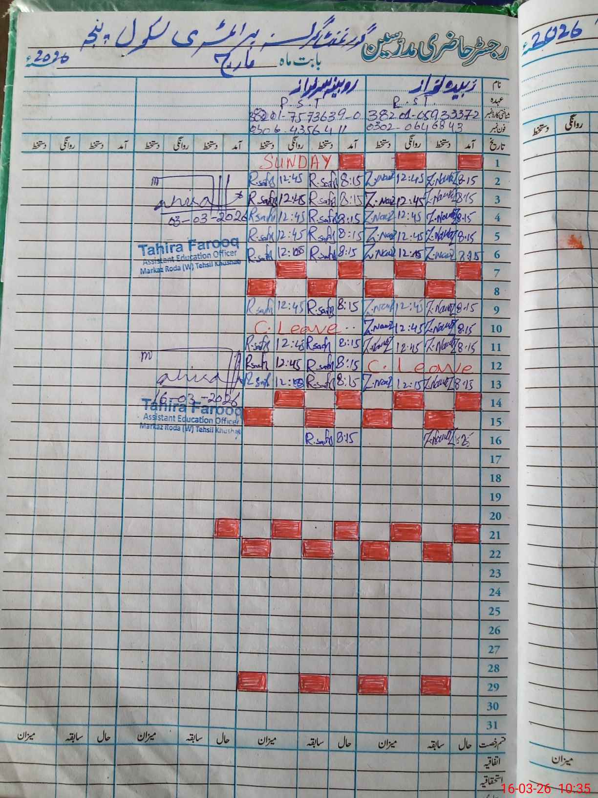 | District: KHUSHAB | Tehsil: KHUSHAB | Markaz: RODA (FEMALE) | Level: Primary | |