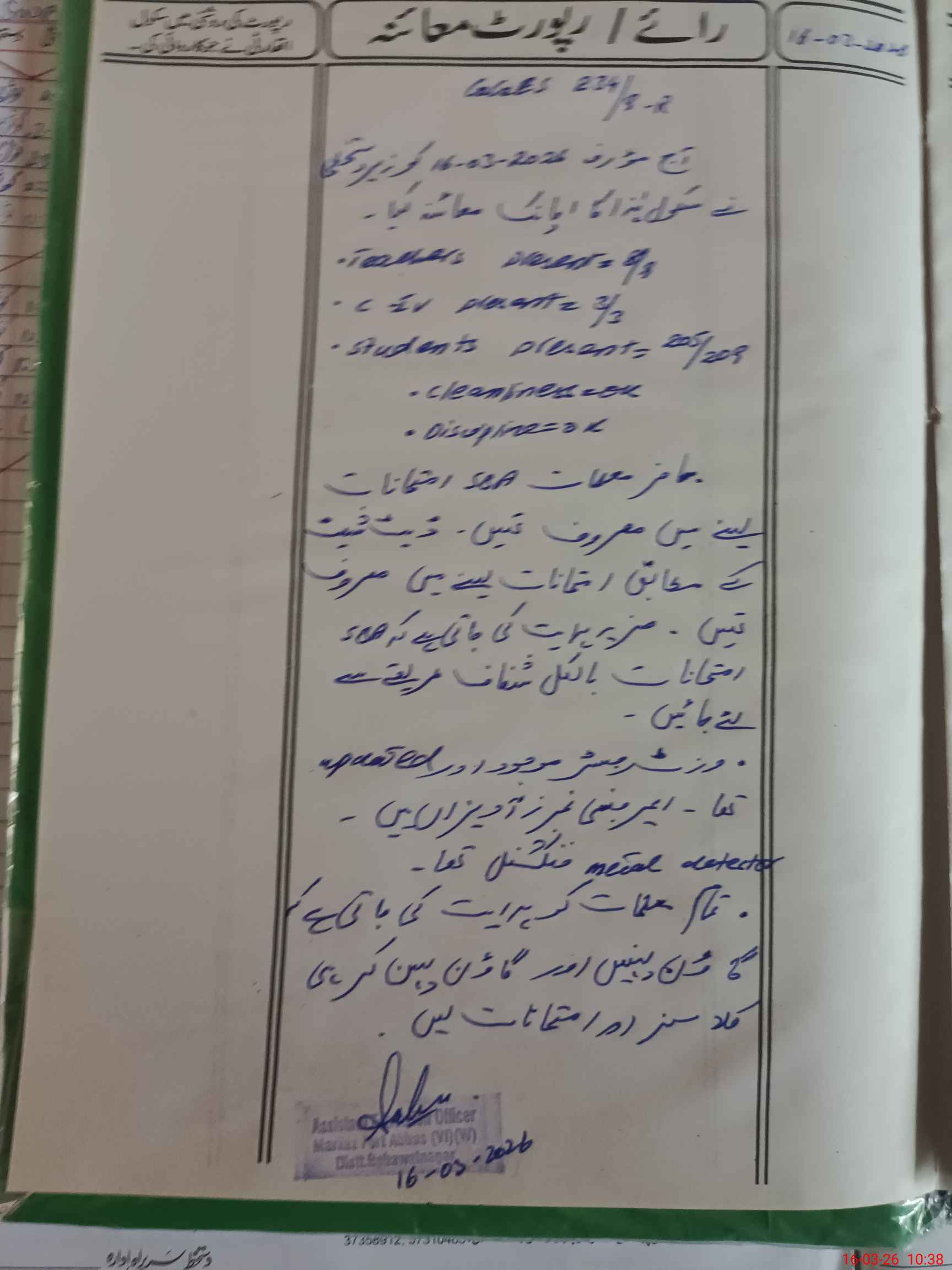 | Certified that this School was Inspected by the Undersigned MEA/DMO Today and the Information Stated Above is as Per Record. | |||||