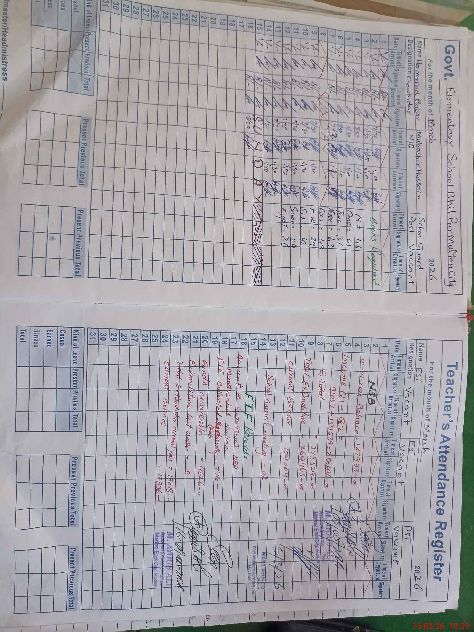 | 36**** | Sa**** Sh**** | PST Science/Maths | Regular | 0 | 0 | 0 | 0 | 0 | 0 | 0 | 0 | 0 | Maternity |
