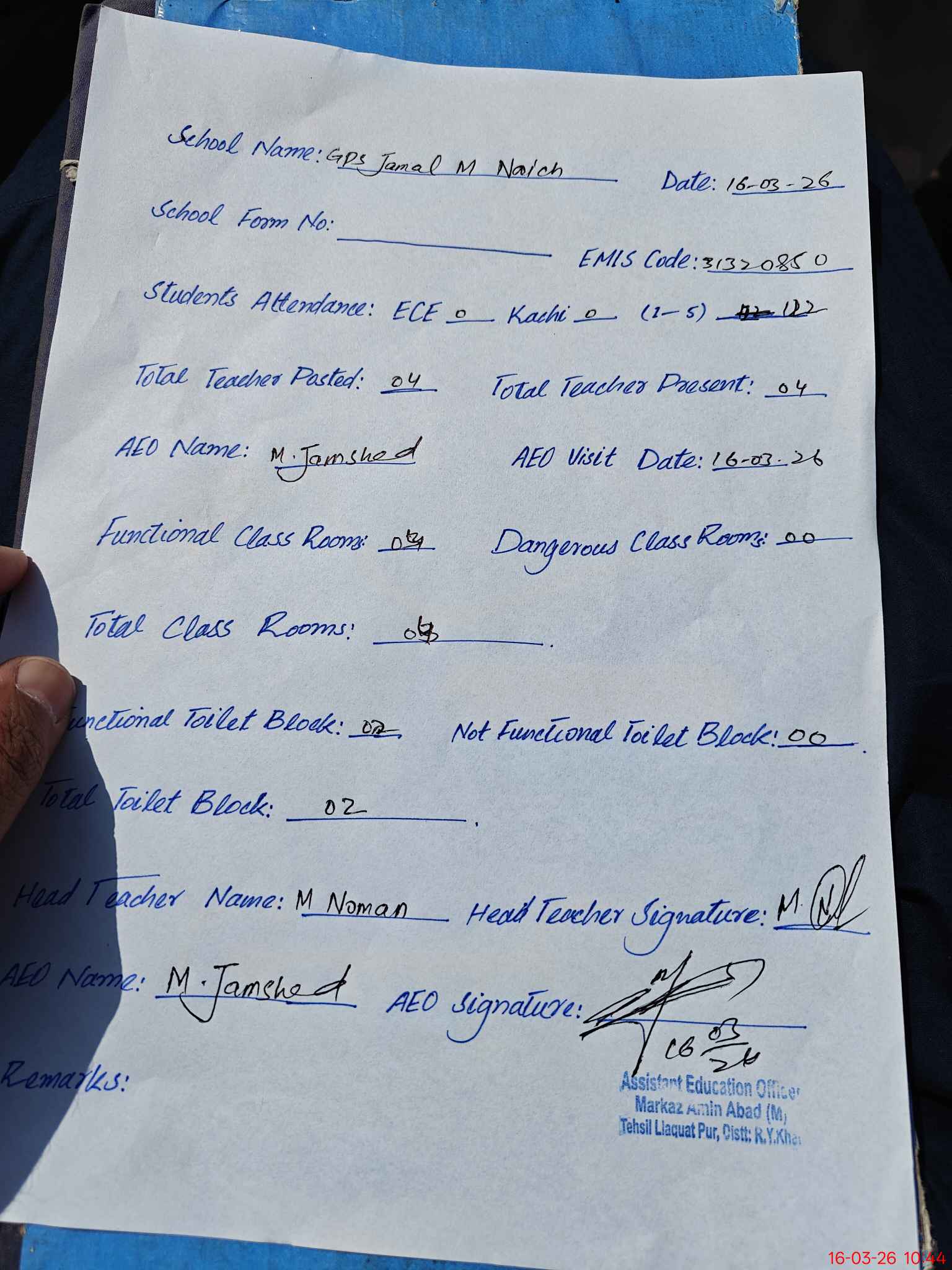 | EMIS Code: 31320850 | Name of School: GPS JAMAL MUHAMMAD NAICH | |||