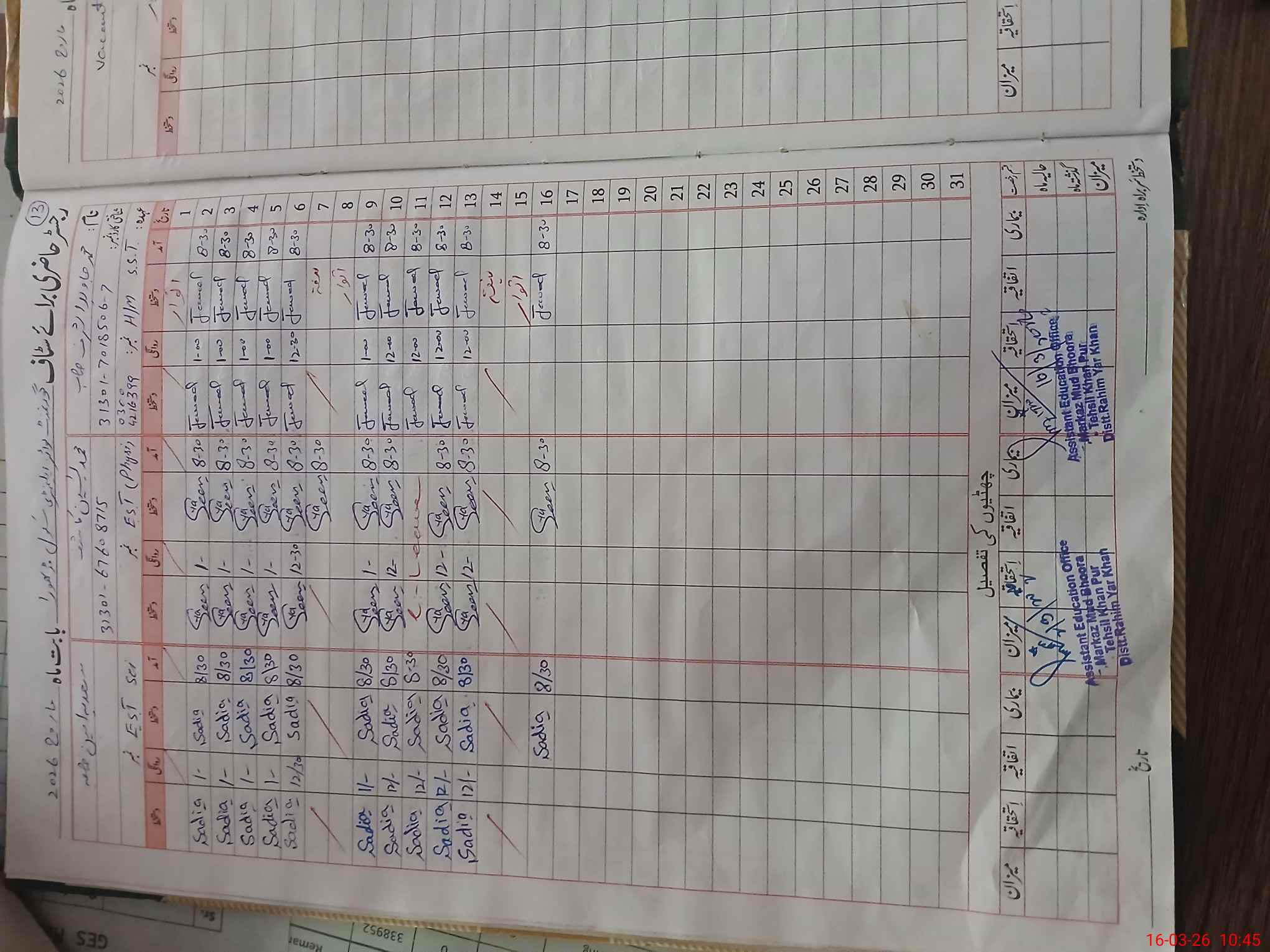 | Name: MJa**** As**** Designation: (School Headmaster's/Headmistress's) SST Phone/Cell Number: 03**** |