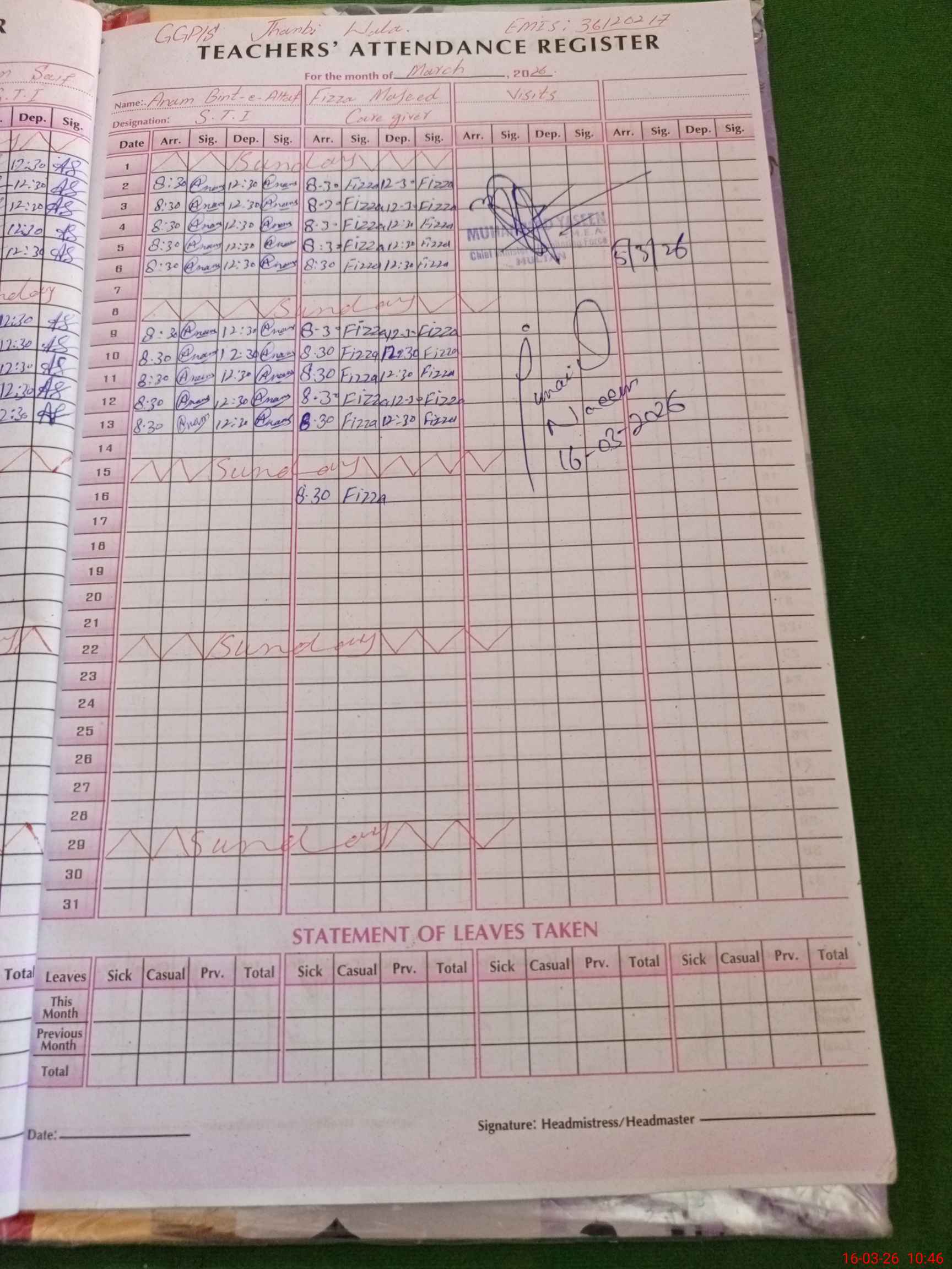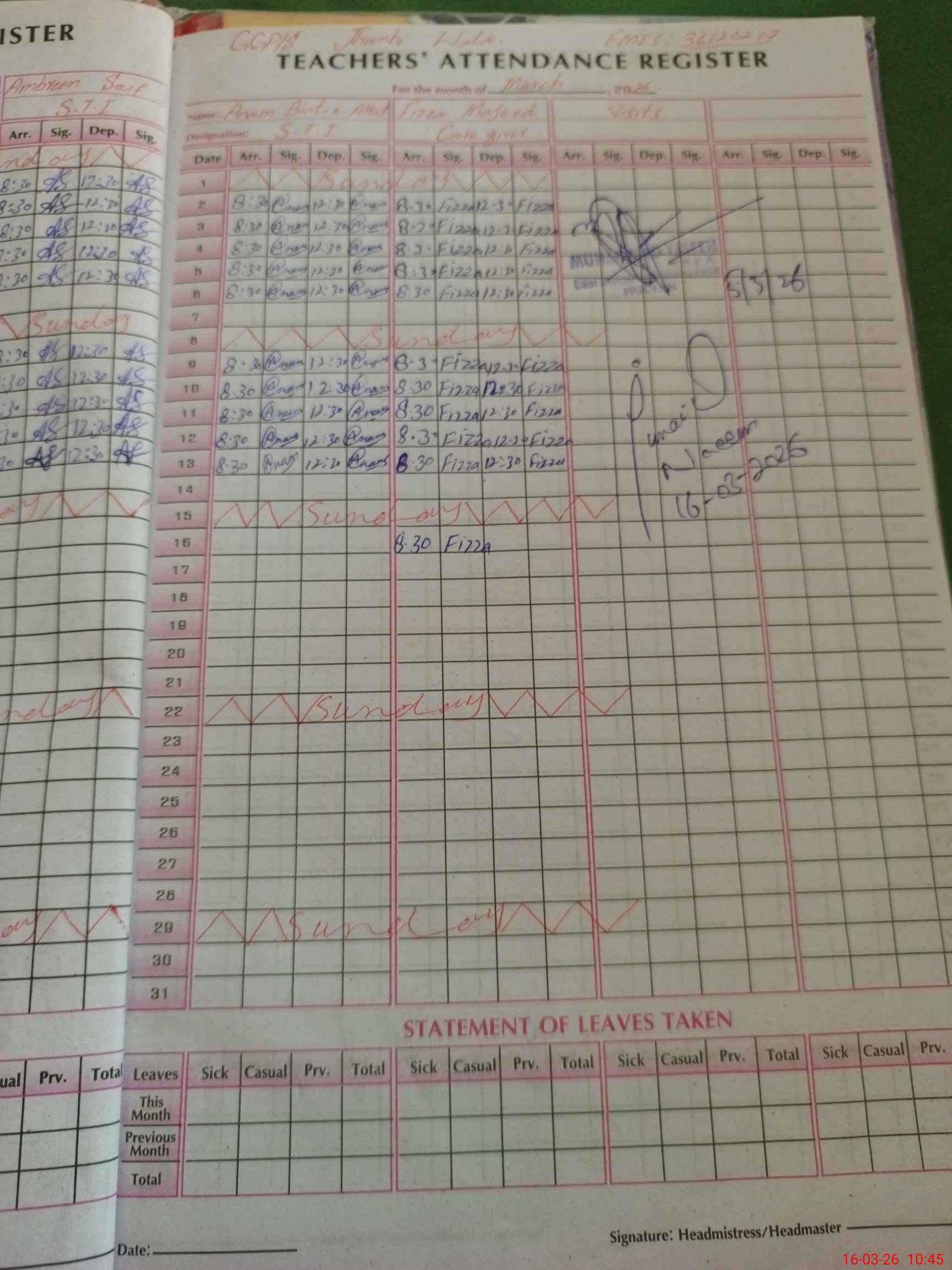 | Name: Hi**** As**** Designation: (School Headmaster's/Headmistress's) PST Phone/Cell Number: 03**** |