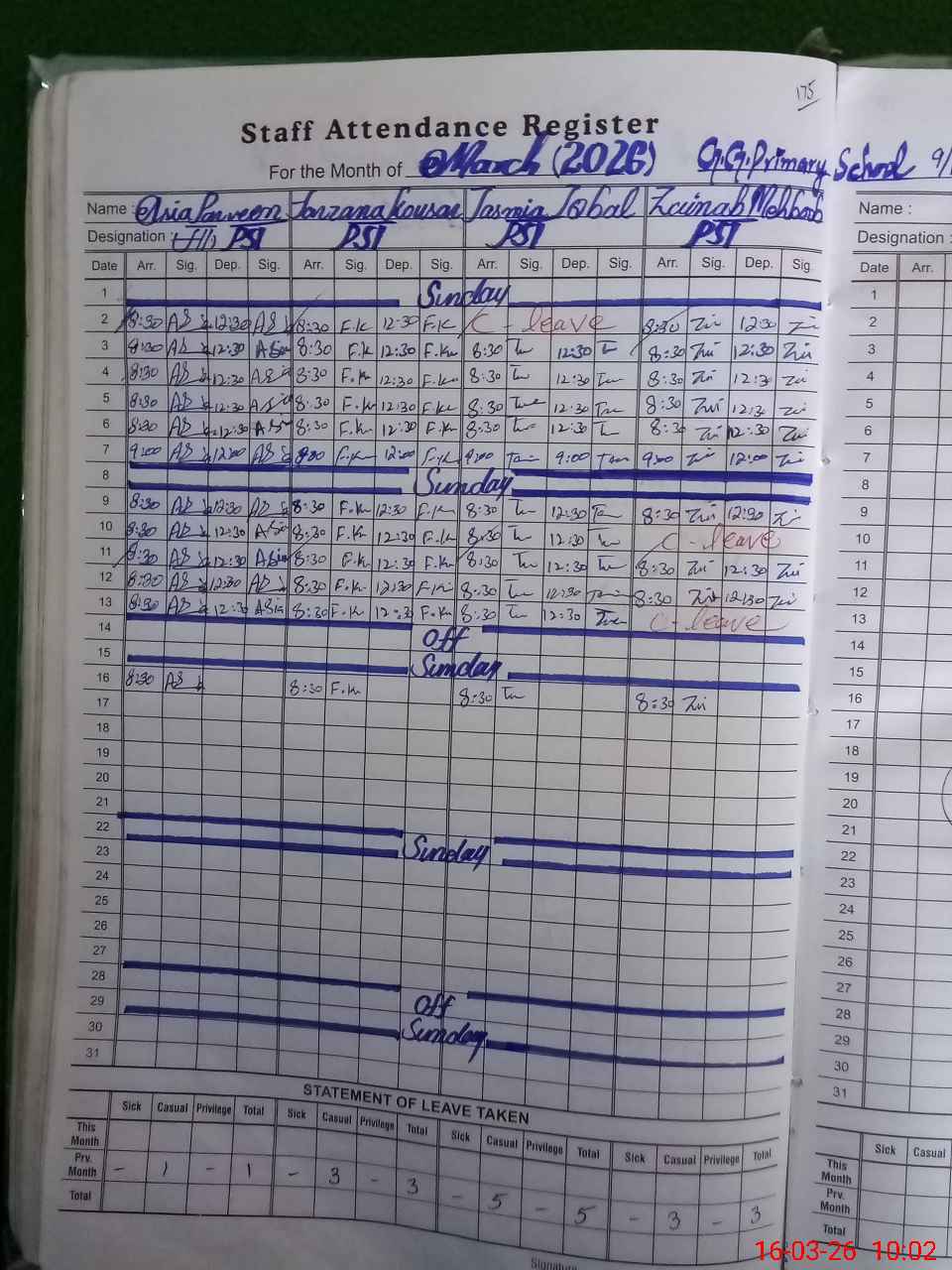 | Name: AS**** PA**** Designation: (School Headmaster's/Headmistress's) PST Phone/Cell Number: 03**** |