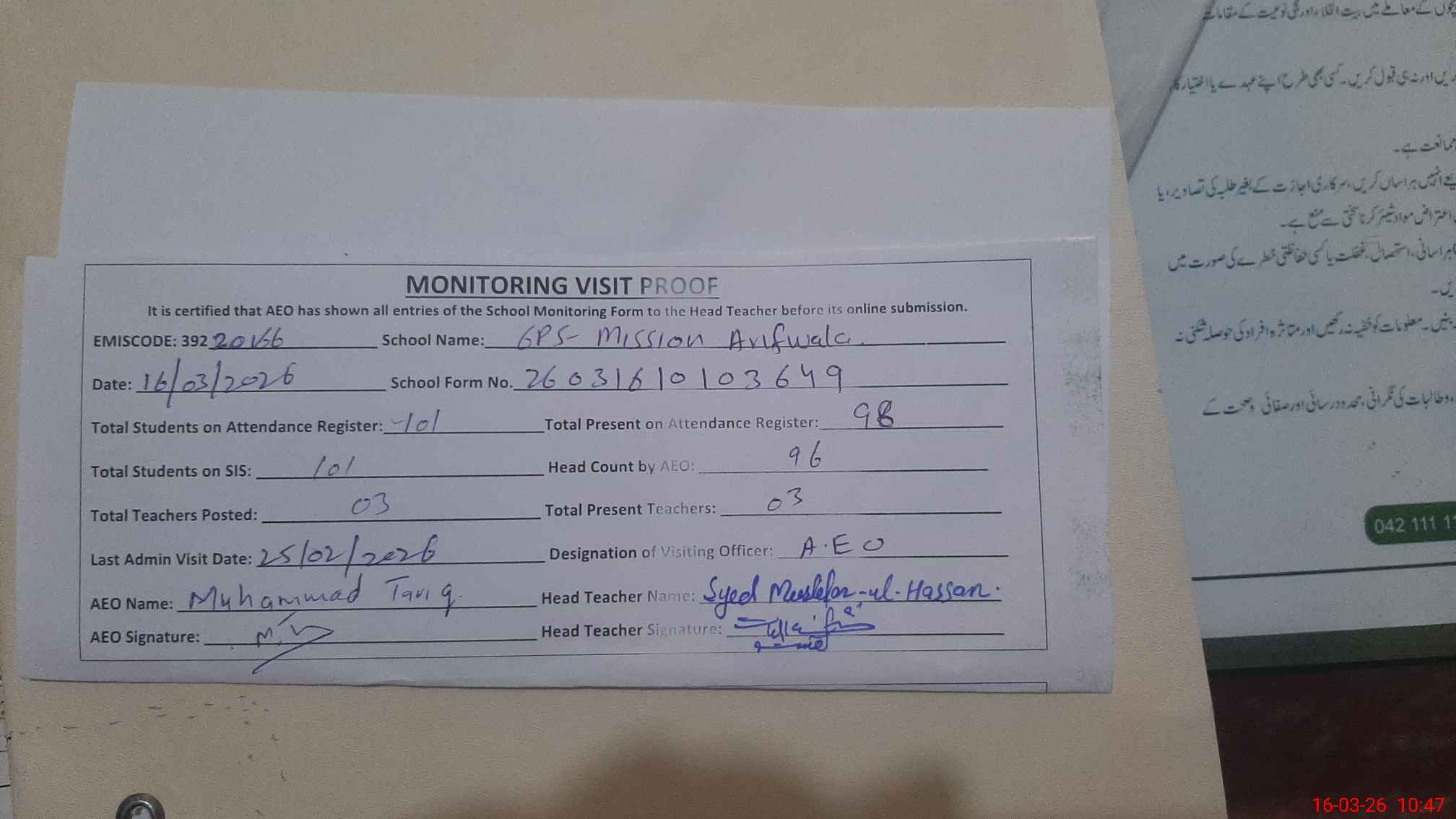 | EMIS Code: 39220166 | Name of School: GPS MISSION BLOCK G | |||