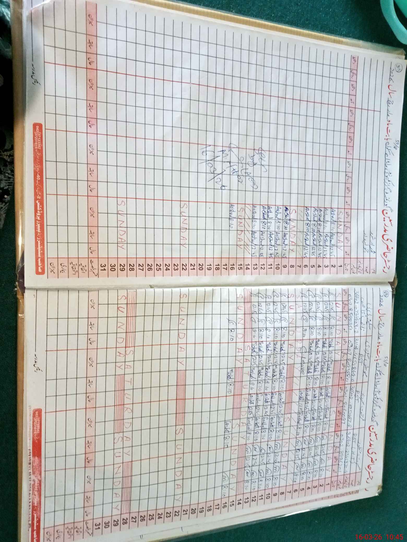 | CNIC | Full Name | Designation | R/C | Absence During Last Calender Month |