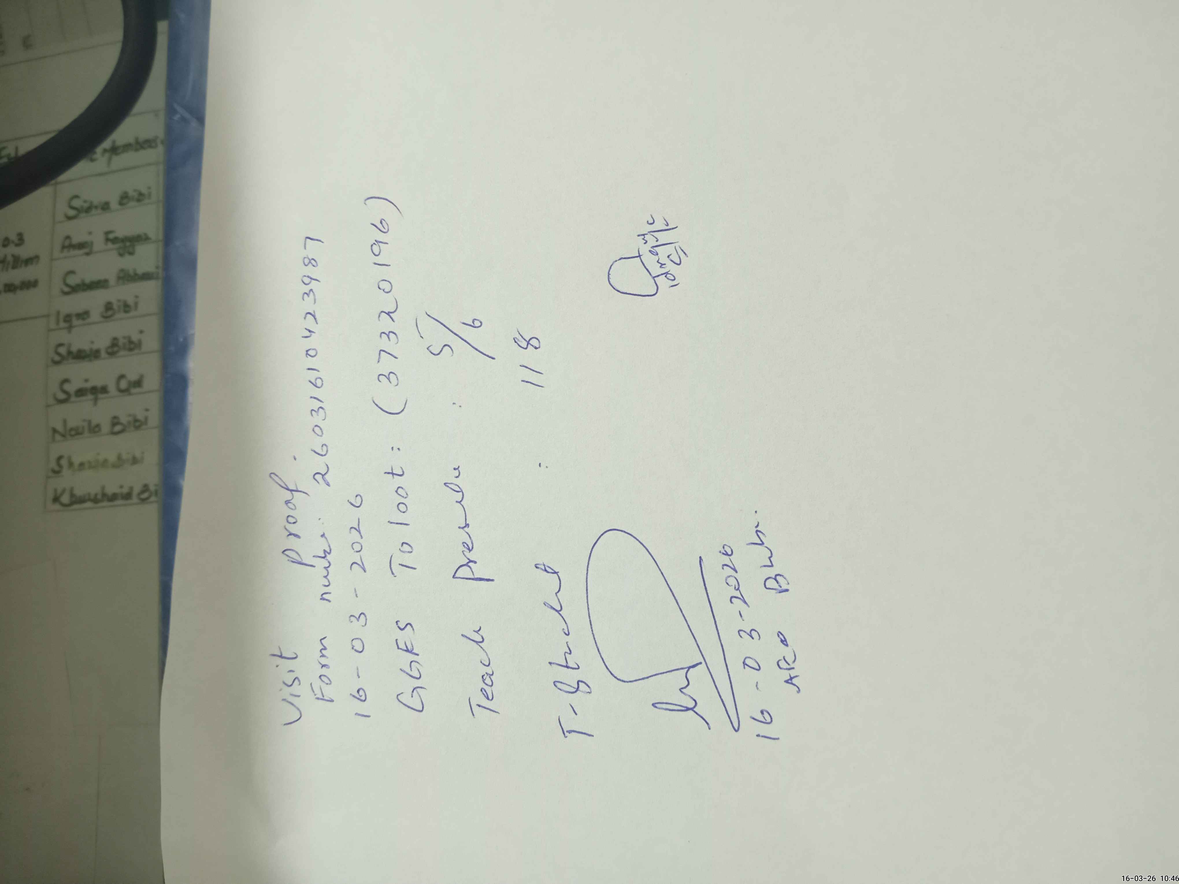 | Attendance Register | Head Teacher | MEA with School | Visit Proof |