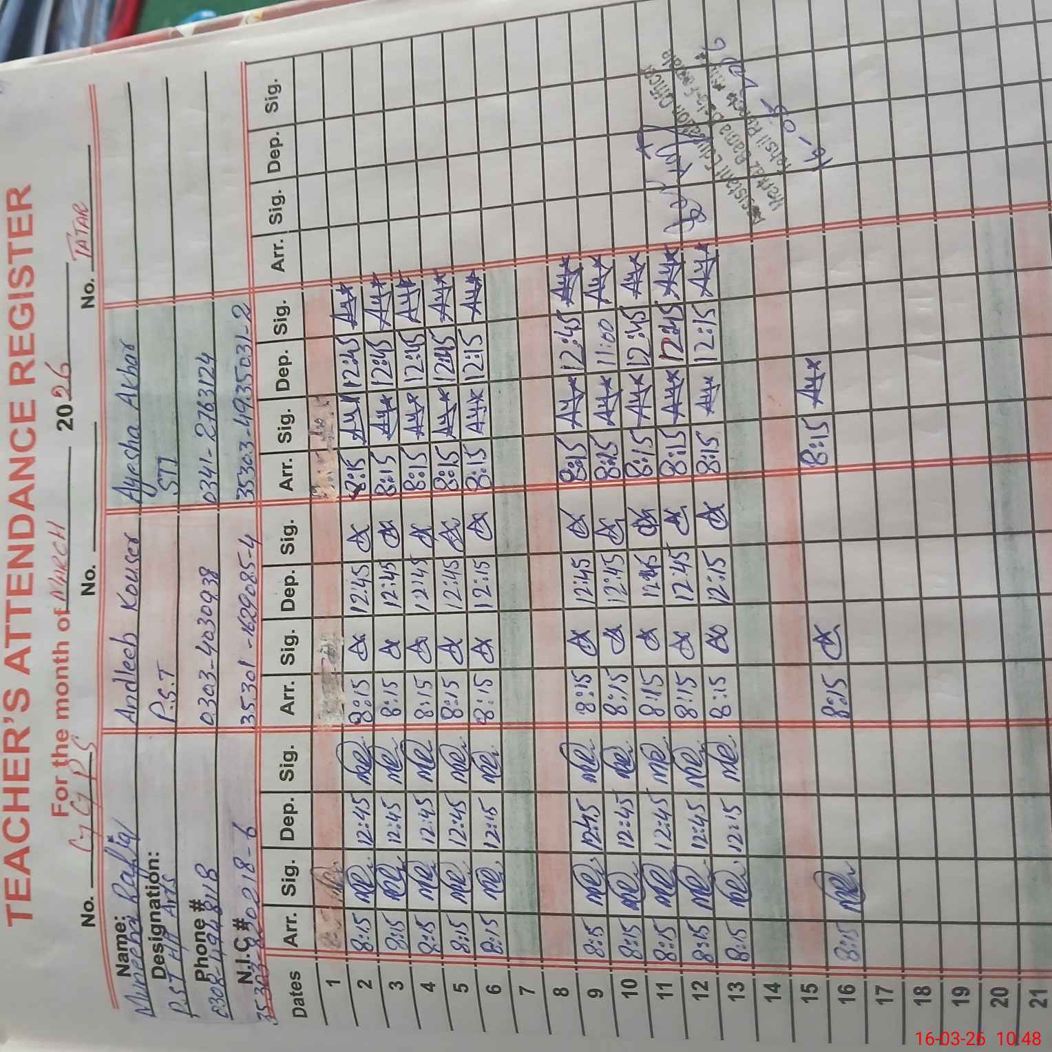 | Name: Mu**** Ra**** Designation: (School Headmaster's/Headmistress's) ESE Phone/Cell Number: 03**** |
