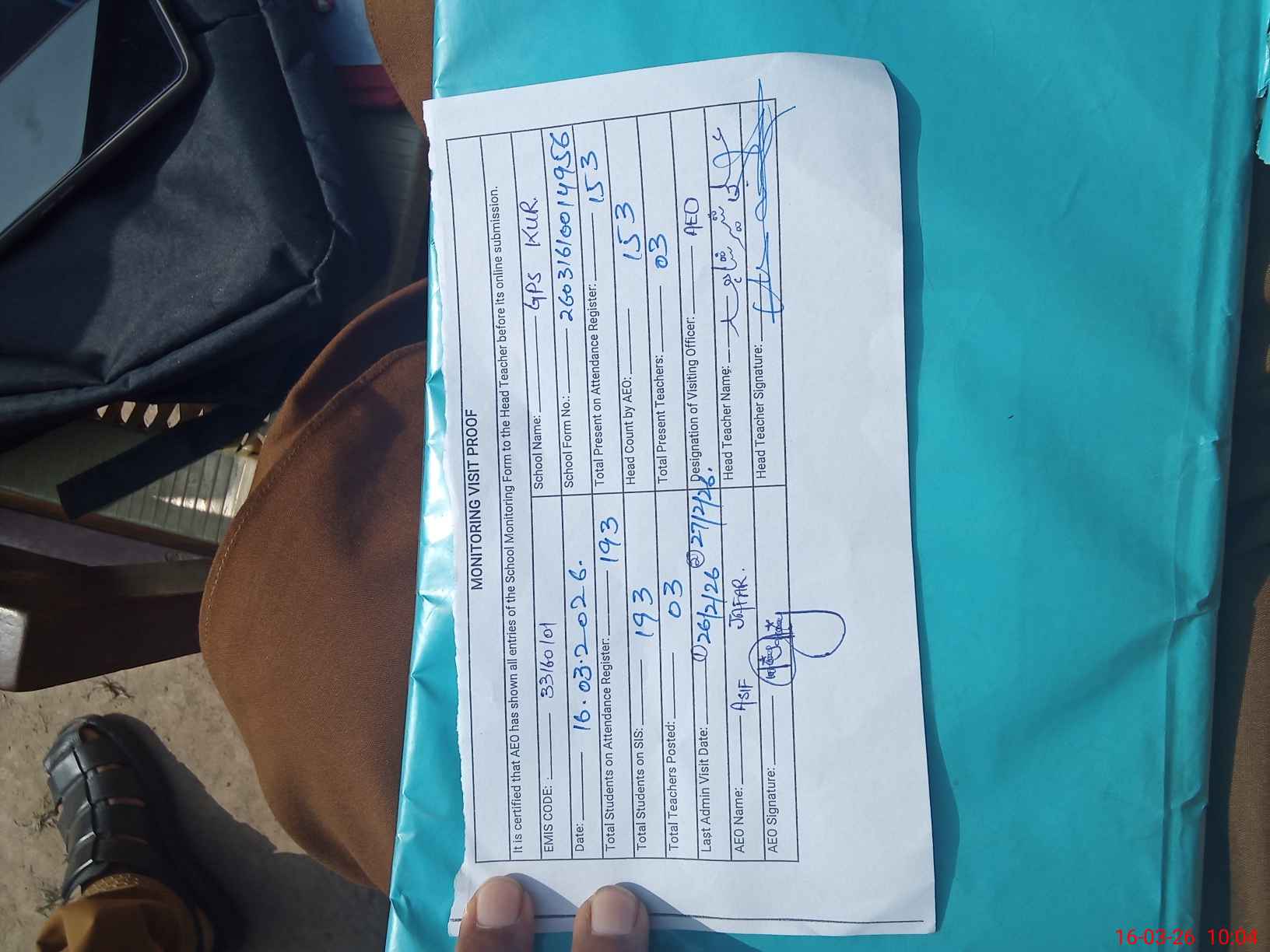 | EMIS Code: 33160101 | Name of School: GPS MOZA KUR | |||