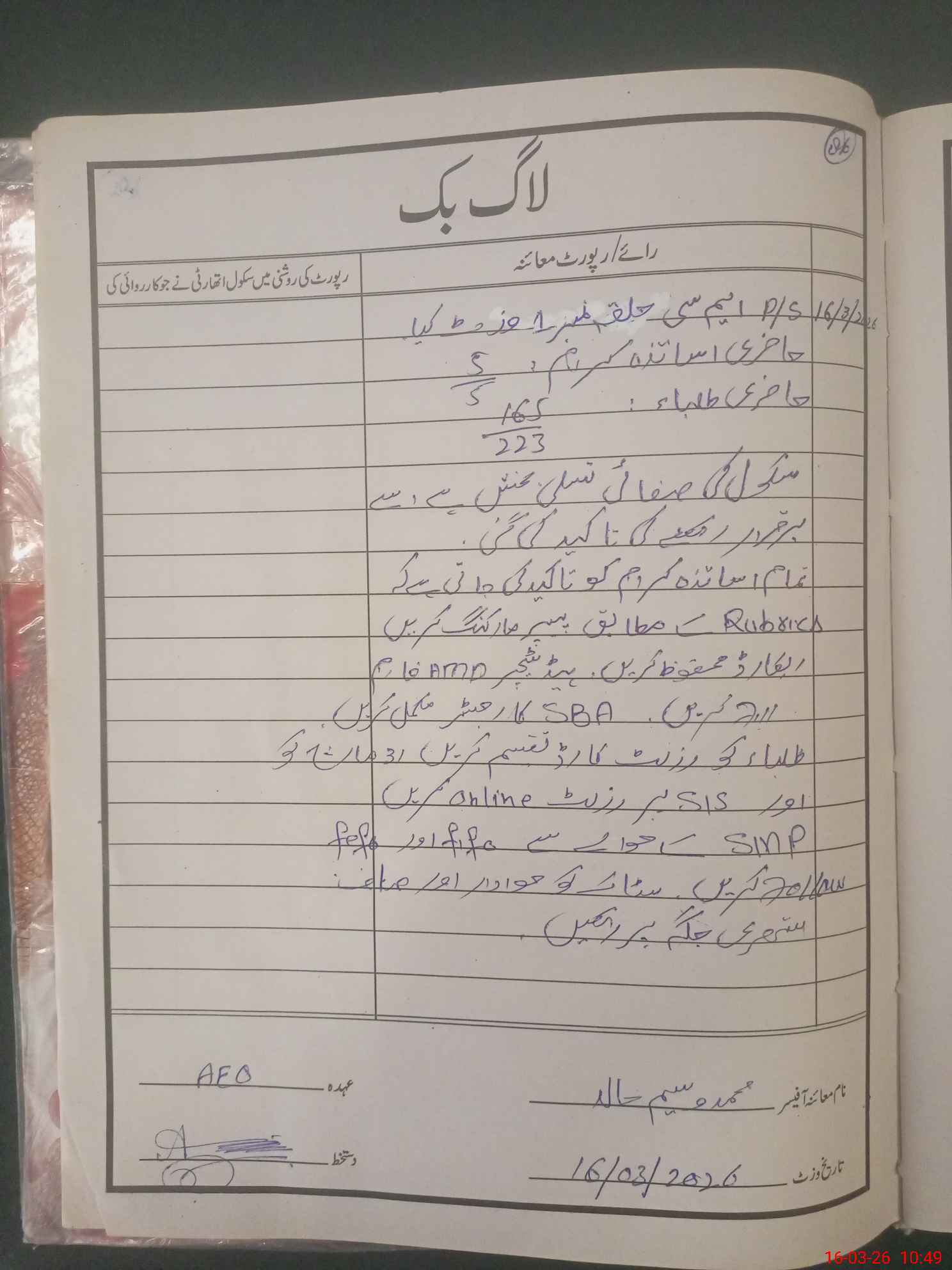 | Certified that this School was Inspected by the Undersigned MEA/DMO Today and the Information Stated Above is as Per Record. | |||||