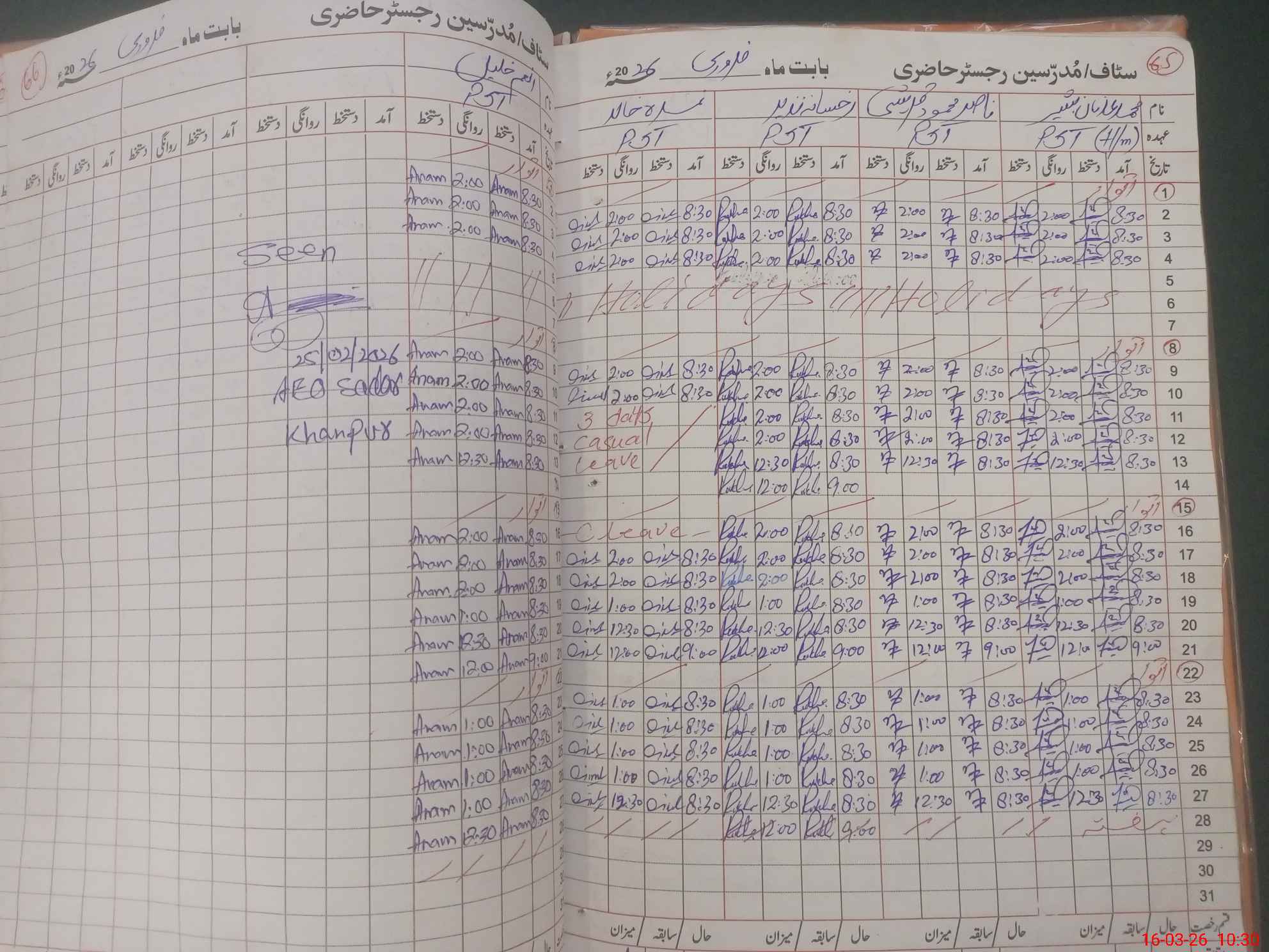 | CNIC | Full Name | Designation | R/C | Absence During Last Calender Month |
