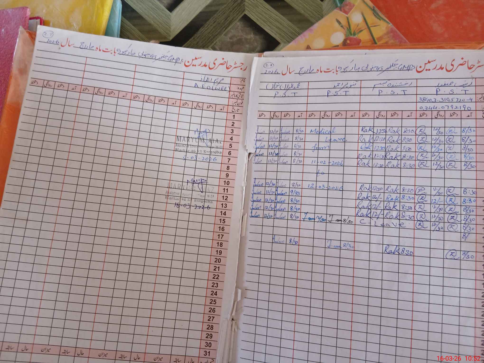 | Name: ZA**** SA**** Designation: (School Headmaster's/Headmistress's) PST Phone/Cell Number: 03**** |
