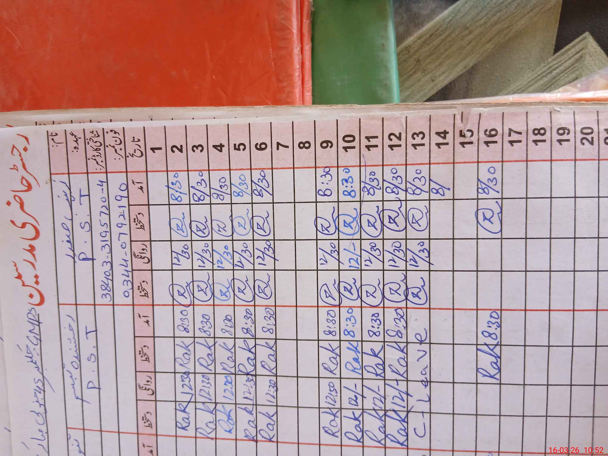 | CNIC | Full Name | Designation | R/C | Absence During Last Calender Month |