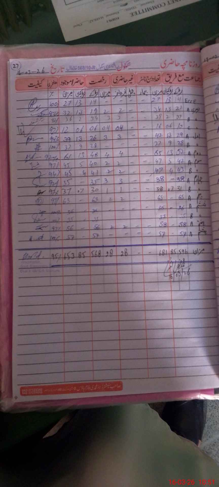 | CNIC | Full Name | Designation | R/C | Absence During Last Calender Month |