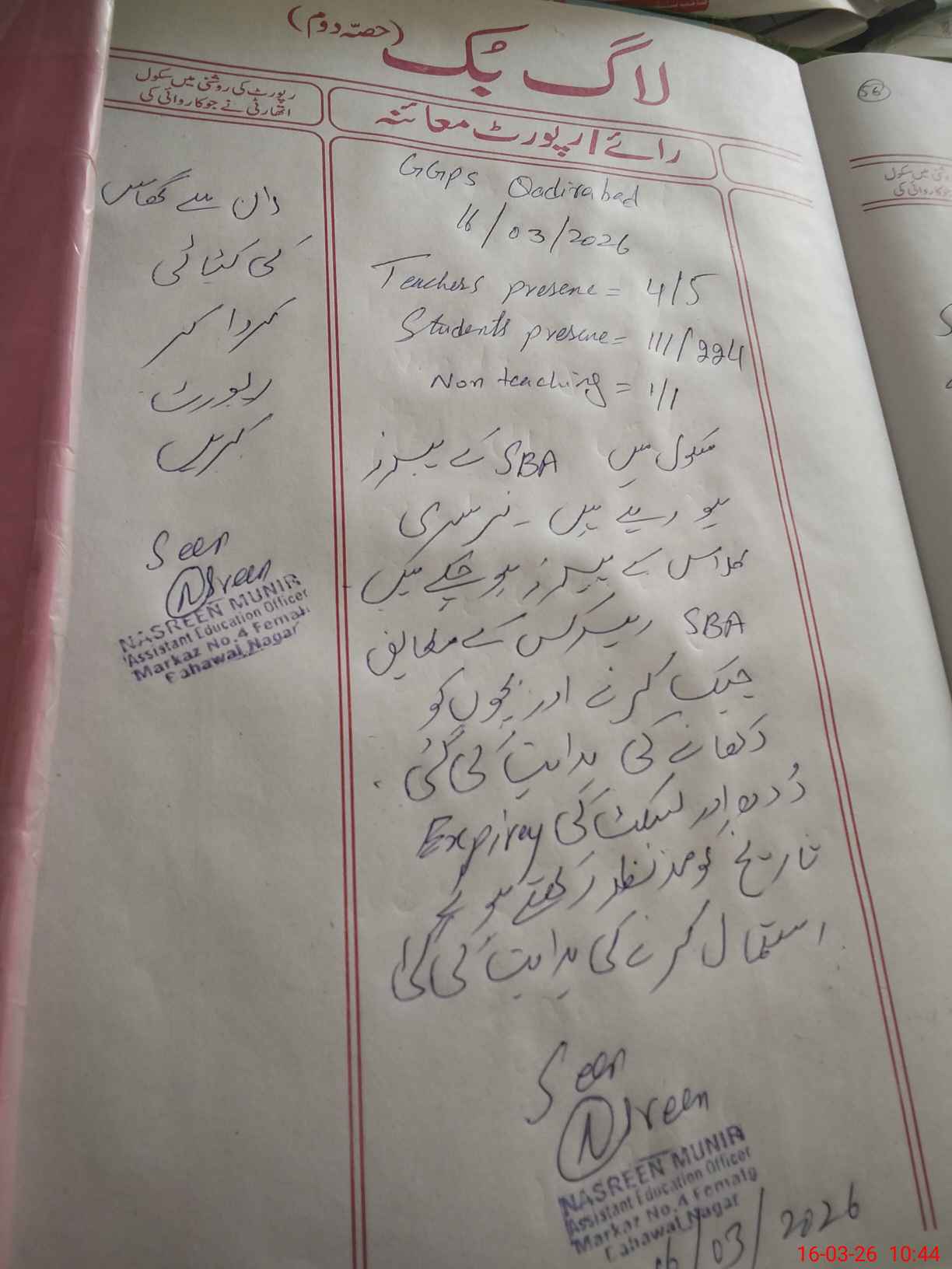 | Certified that this School was Inspected by the Undersigned MEA/DMO Today and the Information Stated Above is as Per Record. | |||||