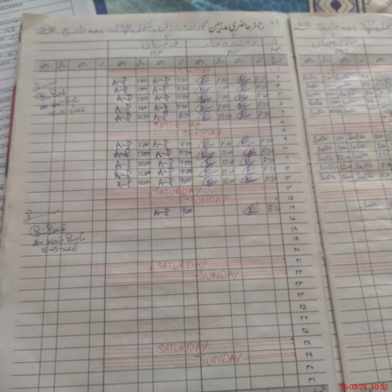 | Leave | Duty | Absent | Maternity | Medical | Ex- Pak |