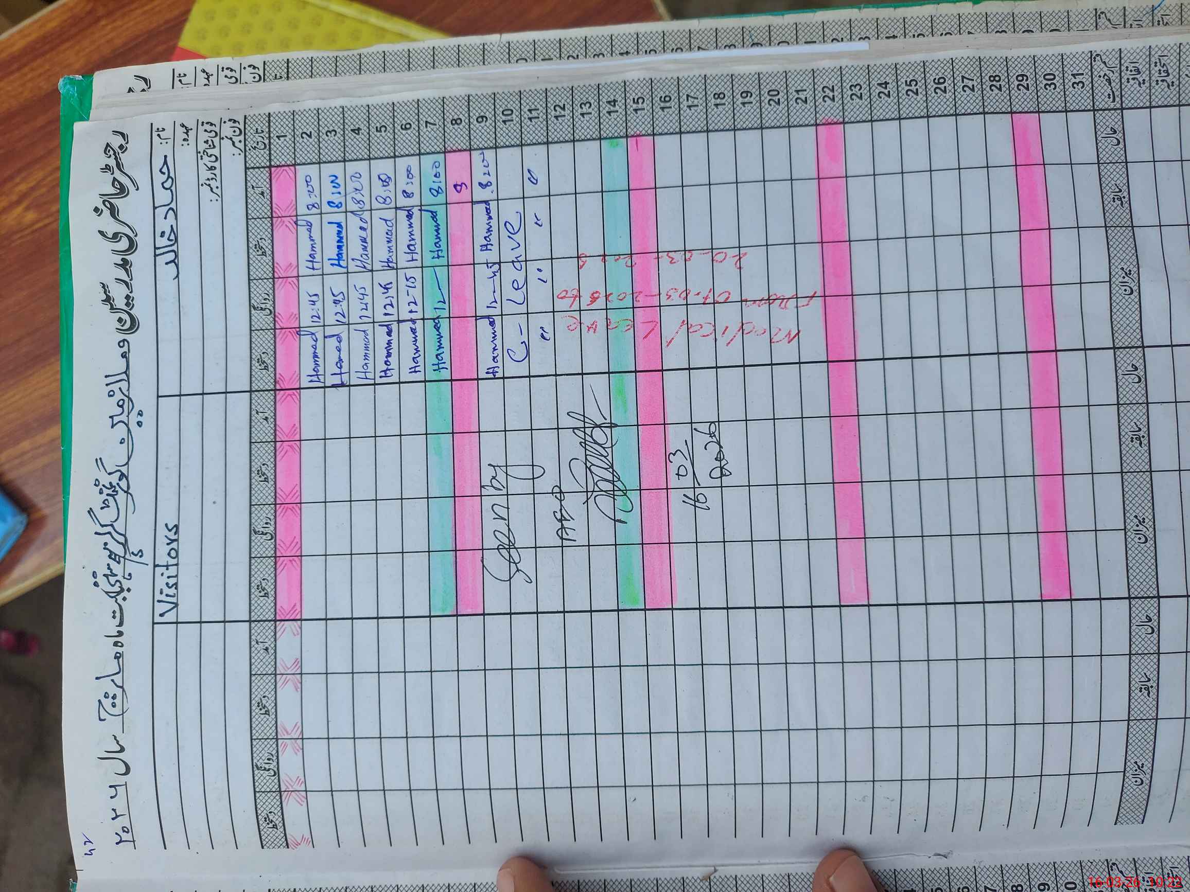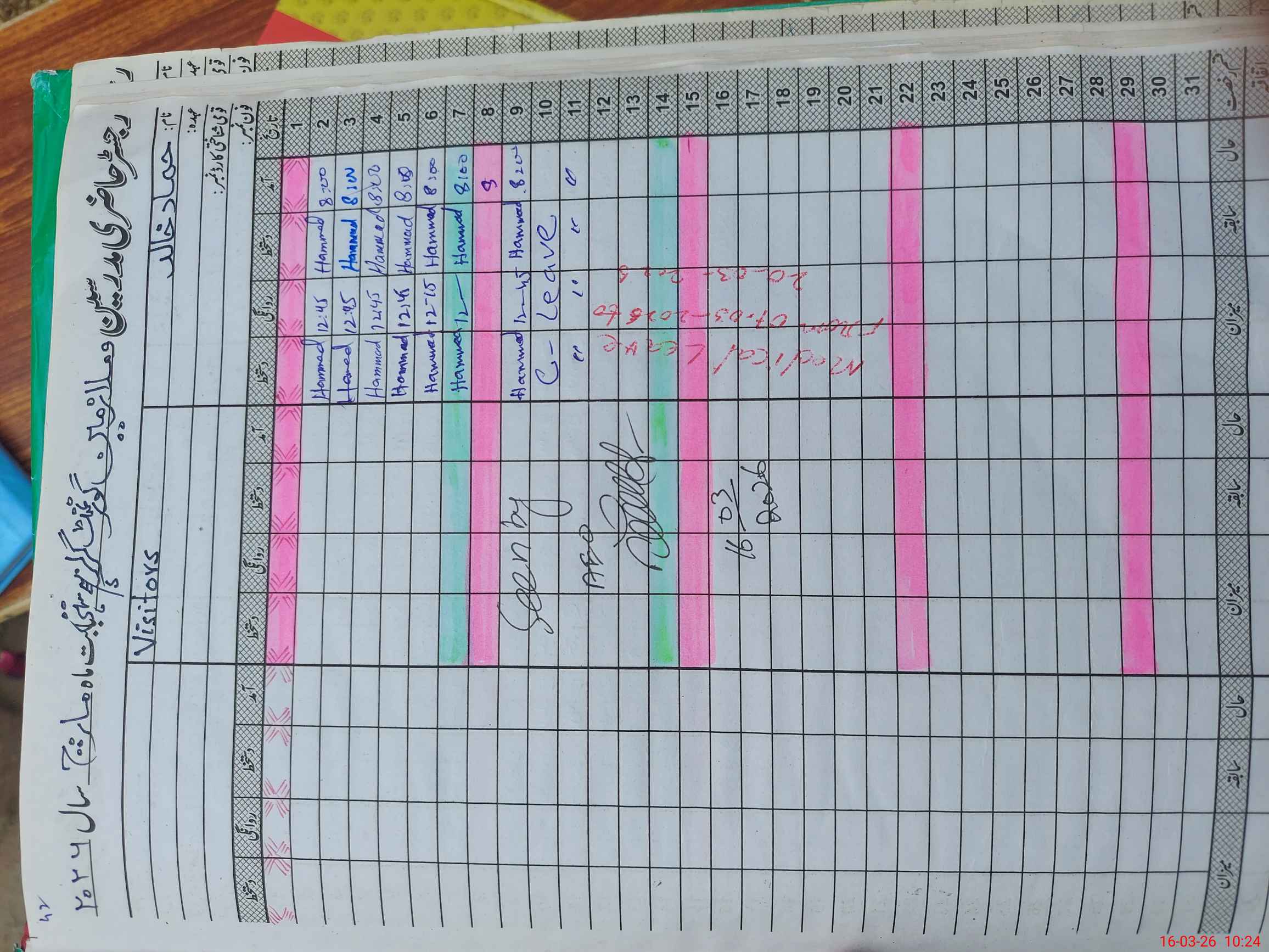 | Leave | Duty | Absent | Maternity | Medical | Ex- Pak |