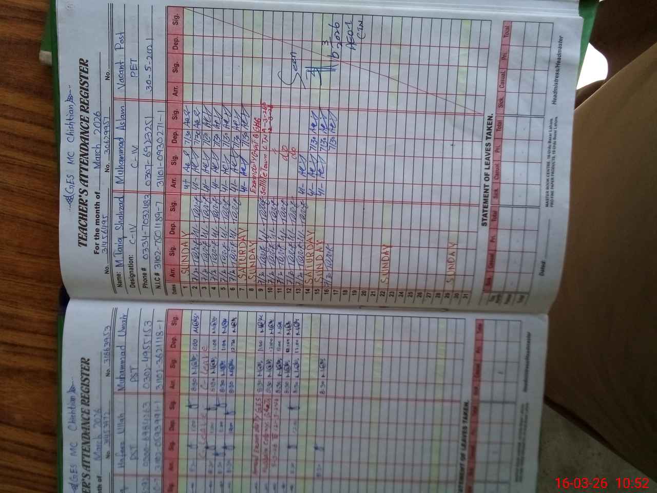 | 31**** | Mu**** Ta**** | SESE Computer Science | Contract | 0 | 0 | 0 | 0 | 0 | 0 | 0 | 0 | 0 | Absent (Un-Authorized) |