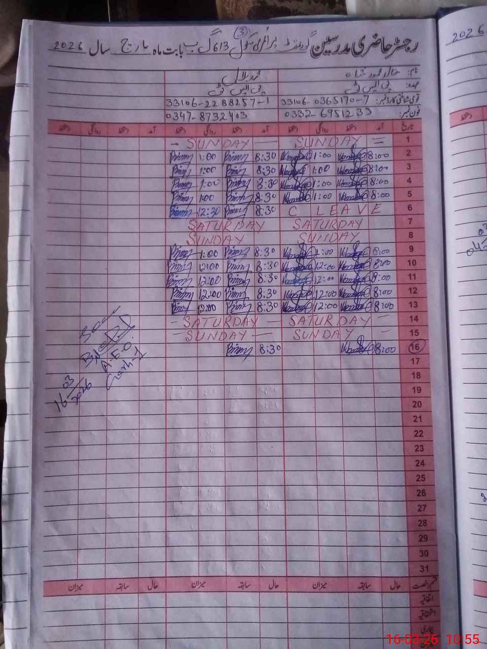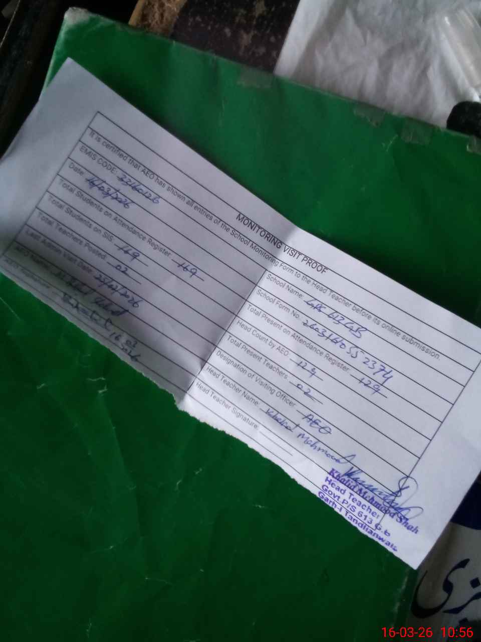 | Name: KH**** MA**** SH**** Designation: (School Headmaster's/Headmistress's) PST Phone/Cell Number: 03**** |