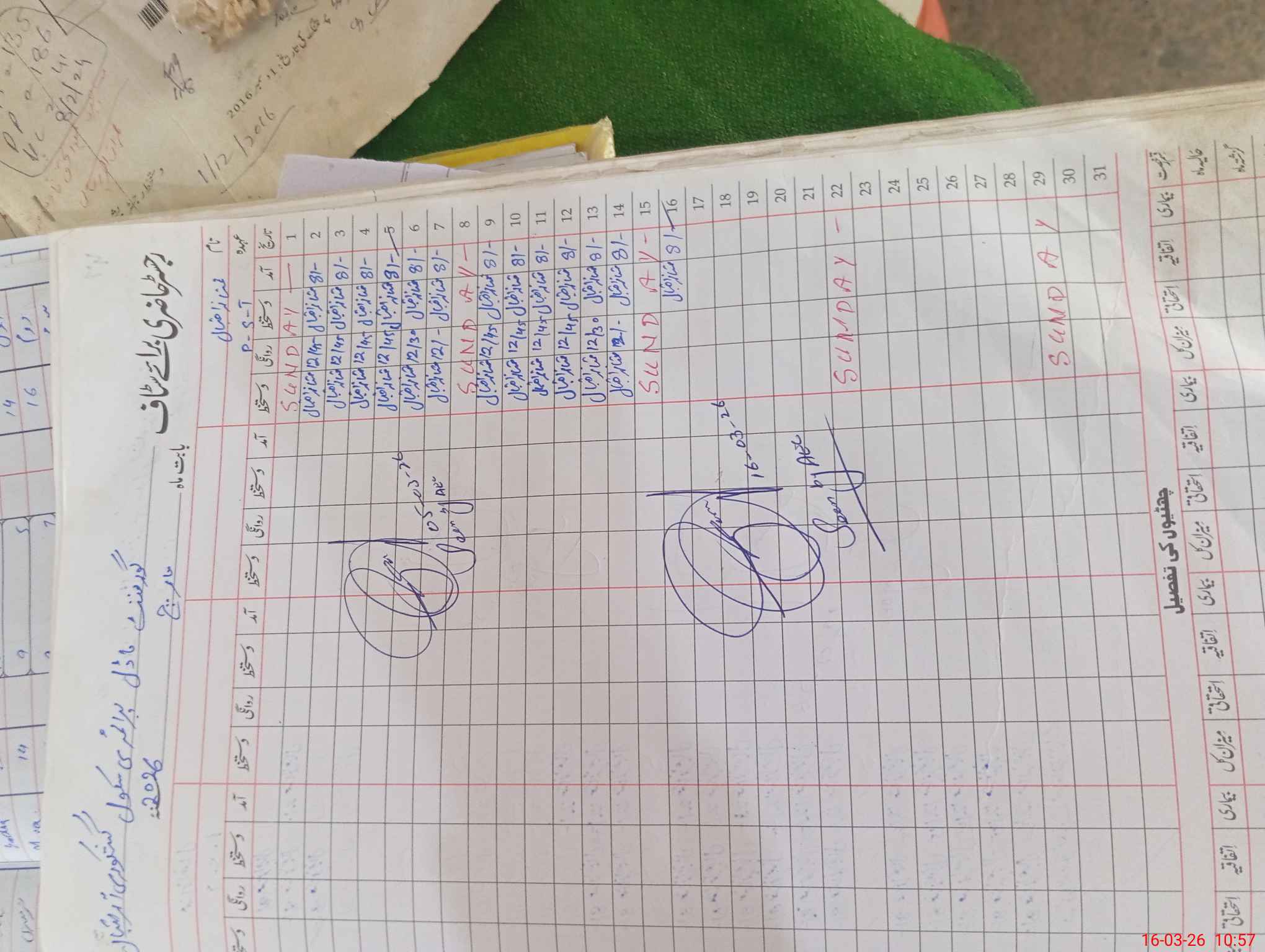 | CNIC | Full Name | Designation | R/C | Absence During Last Calender Month |