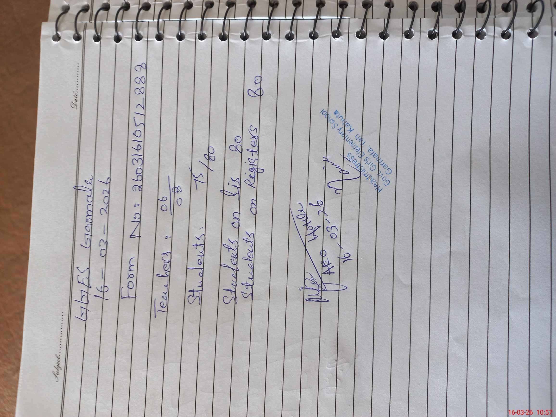 | Attendance Register | Head Teacher | MEA with School | Visit Proof |